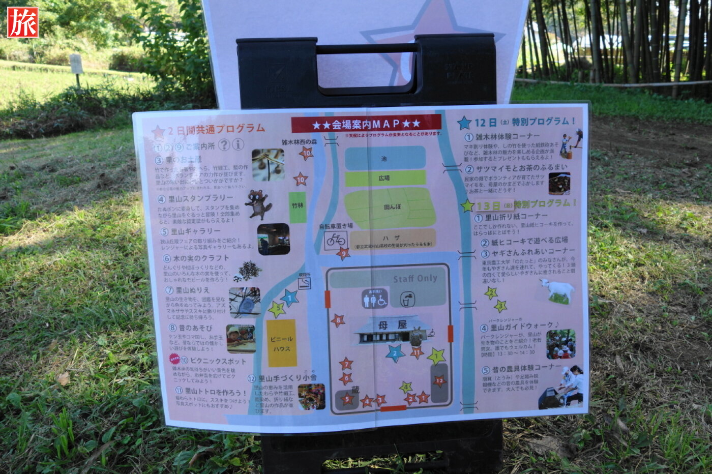 里山秋祭り(10/12-13)会場内マップ。竹林。狭山丘陵フェアの旗。