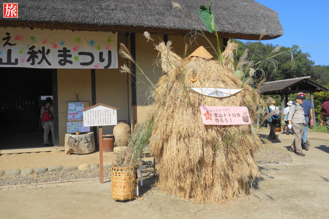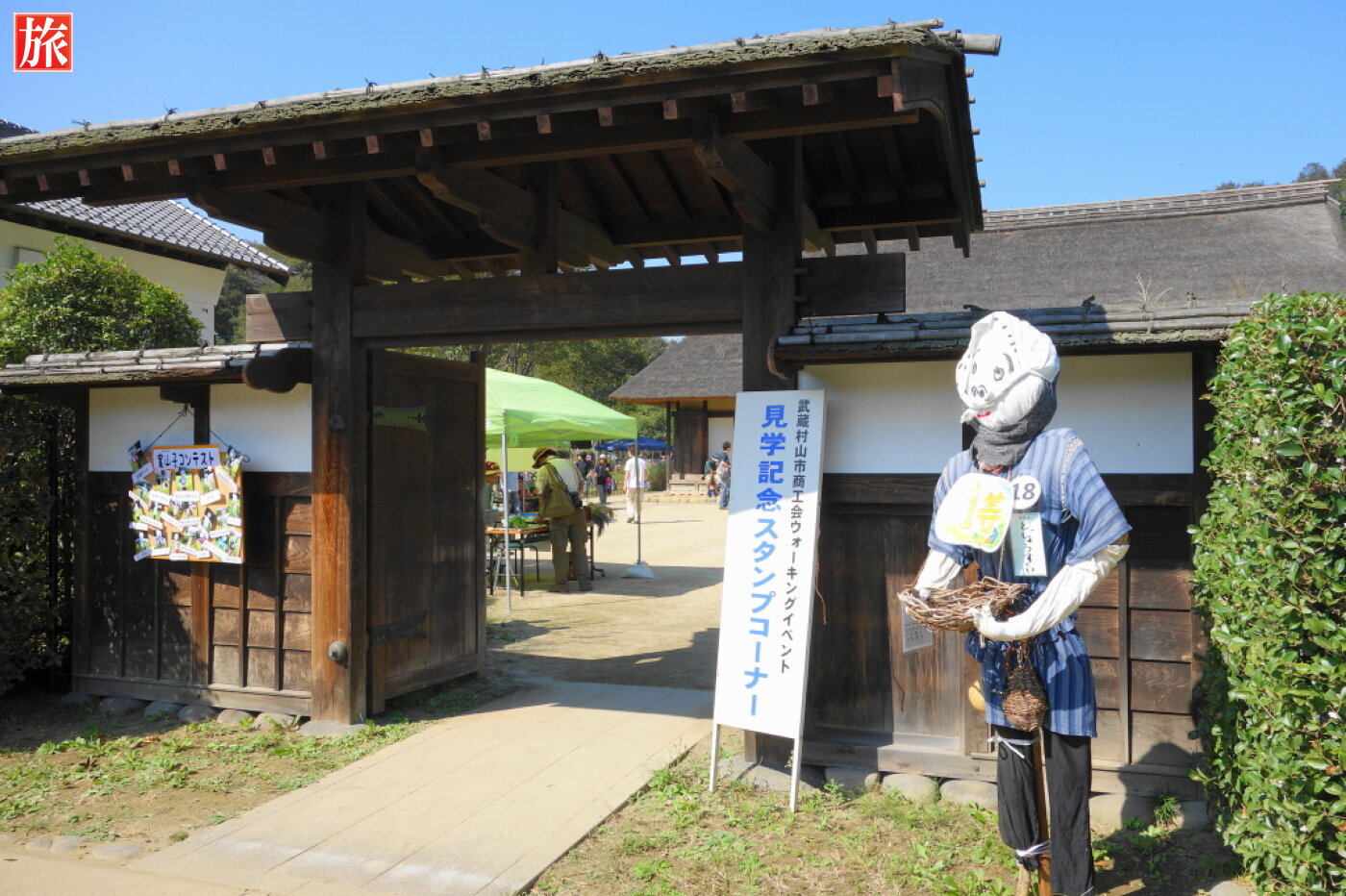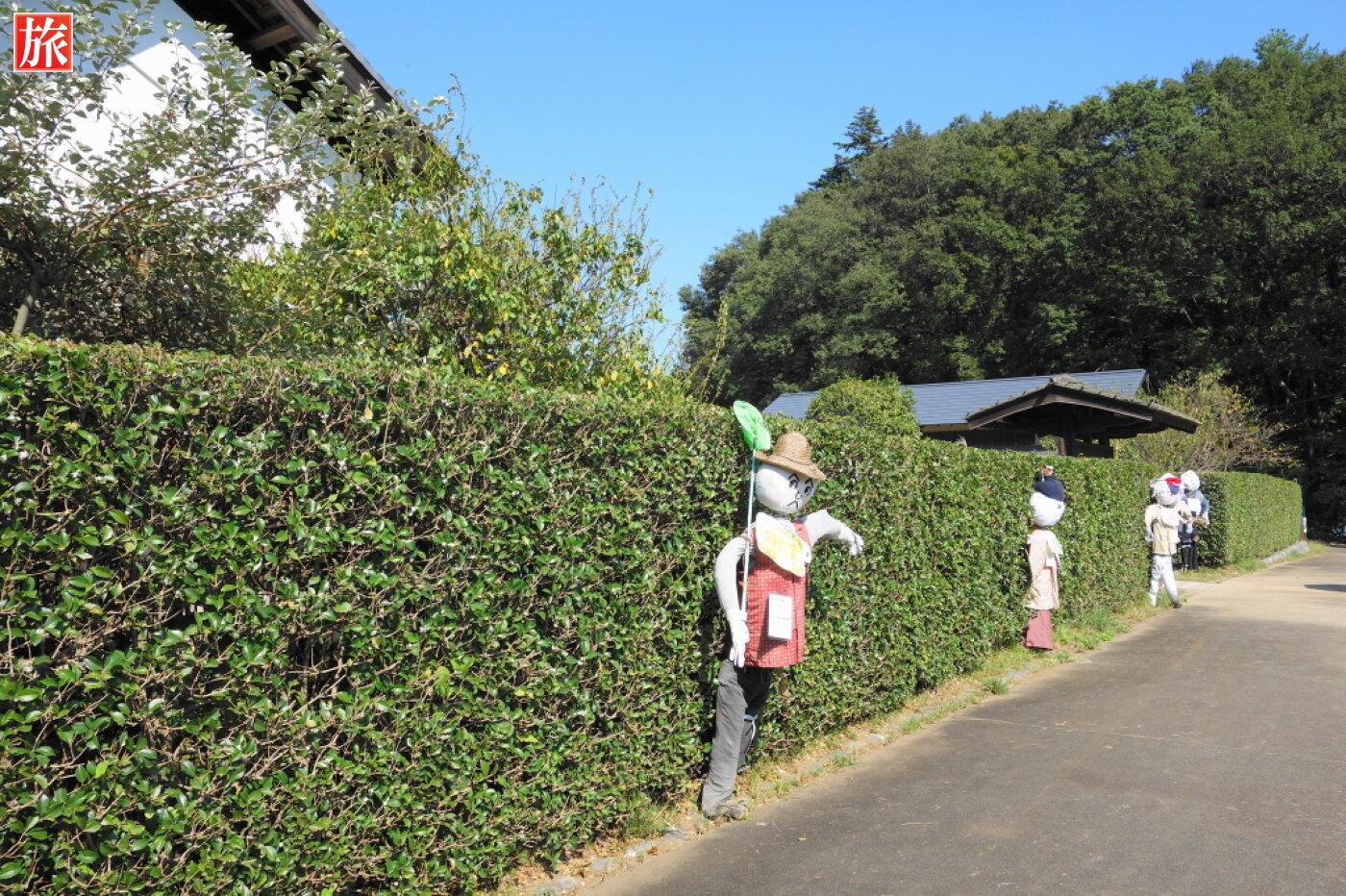 里山民家までの入口をコンテスト入賞かかしが展示されていました。里山民家の入口。