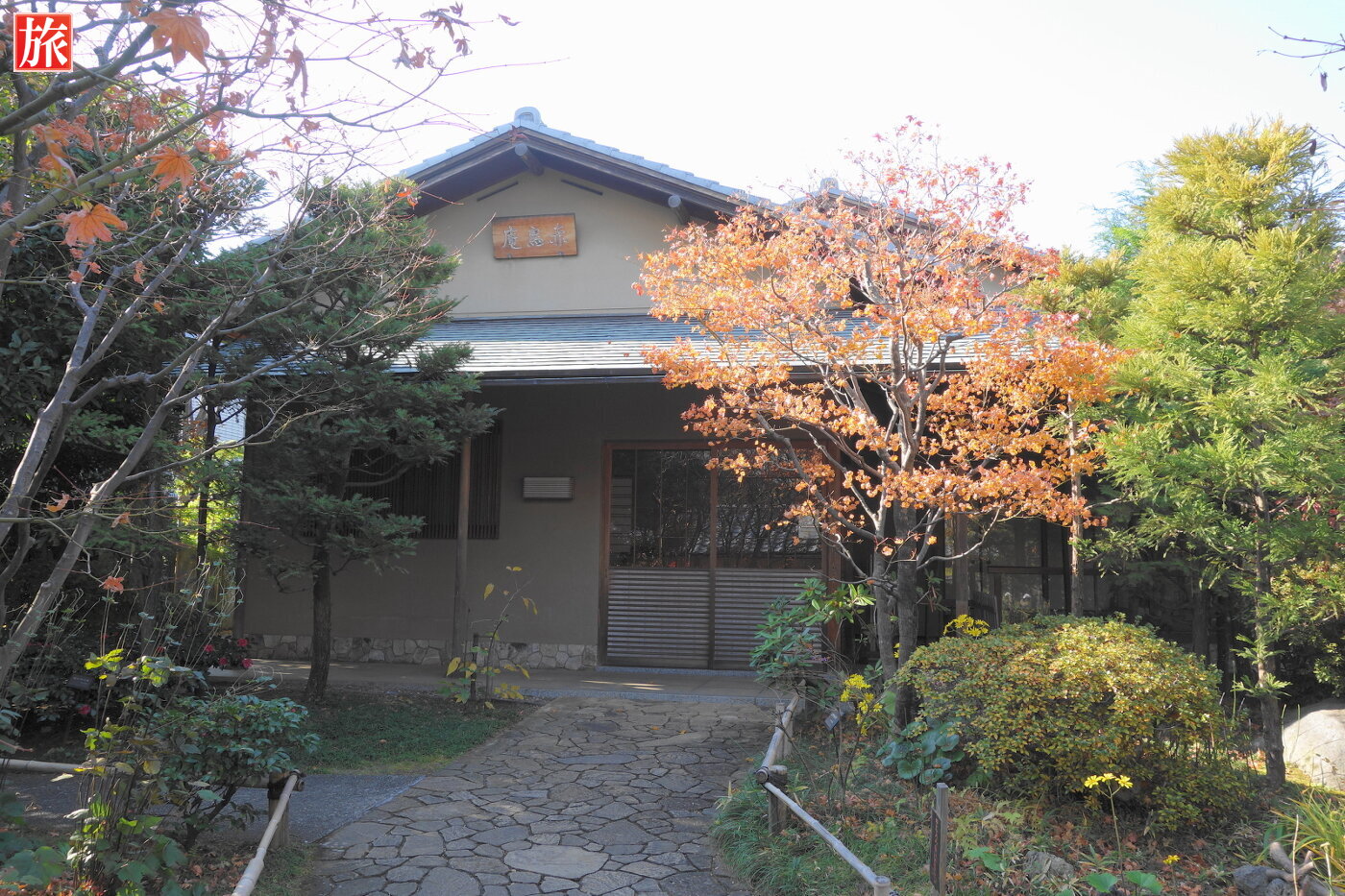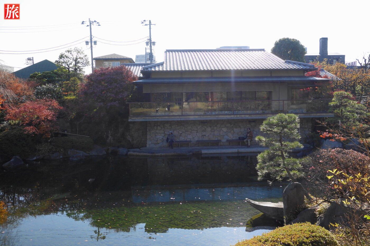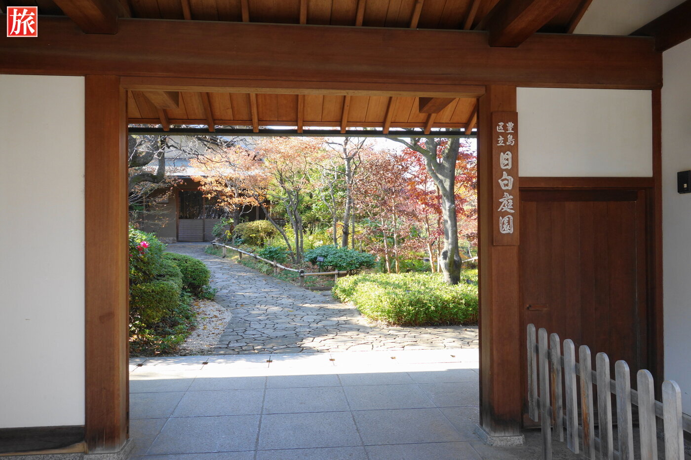散策ルート > 目白庭園 > 自由学園明日館閑散な住宅街の中にあり、庭園は数寄建築の「赤鳥庵」や「六角浮き見堂」が配され、外側は、長屋門と築地塀(ついじべい)で囲まれています。こじんまりした庭園は、池を取り囲むように園路が設けられていて、石塔、や滝等を鑑賞することが出来ます。紅葉の時期には少し遅く、見ごろは過ぎてしまいましたが、都会の喧騒から逃れ、短い時間でしたがリフレッシュできました。こちらの散策時間は20分程度でした。