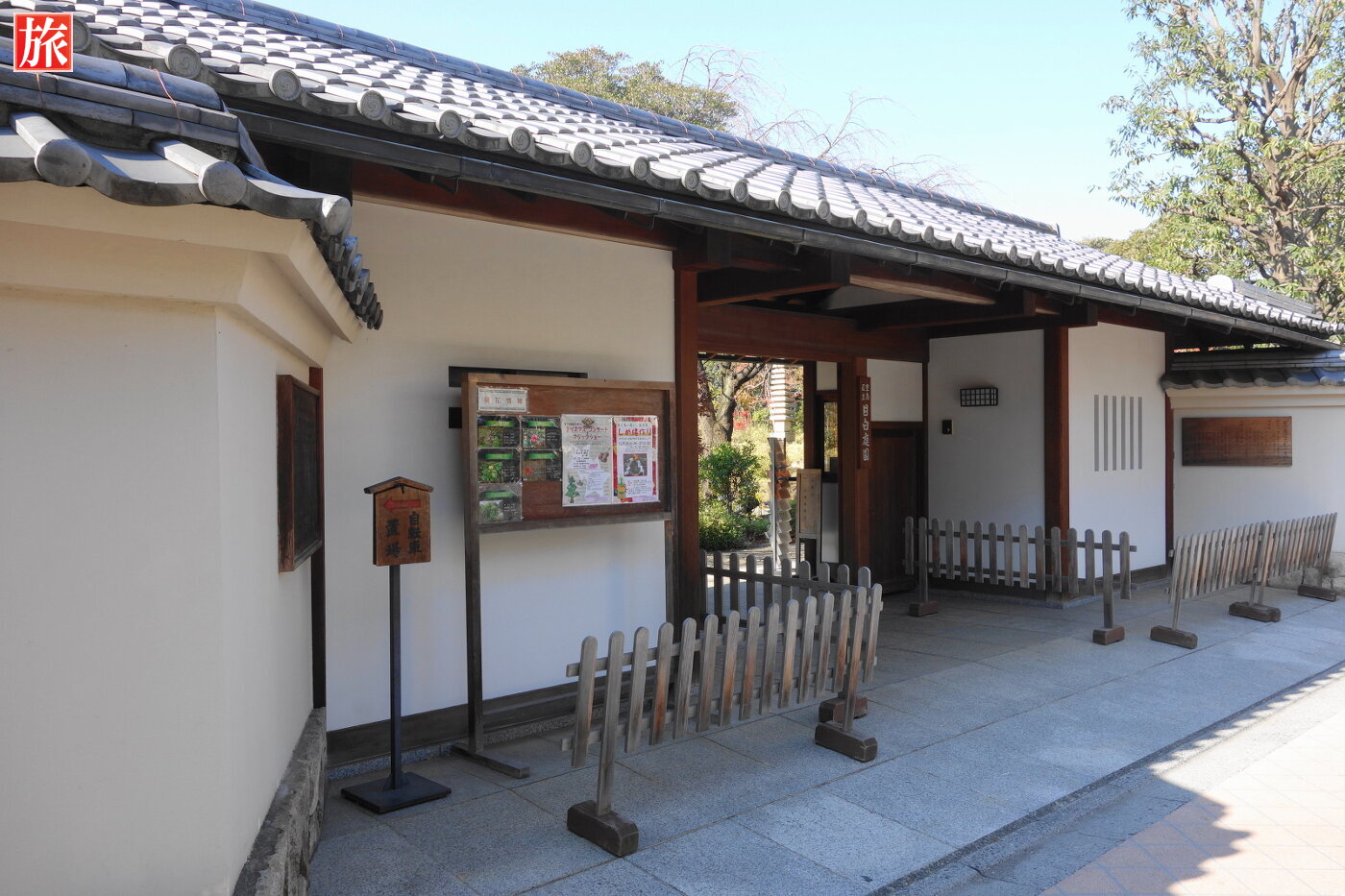 表門(長屋門)を園内から見た様子です。正面には数寄建築の「赤鳥庵」があります。入ってすぐ右手を見た様子です。