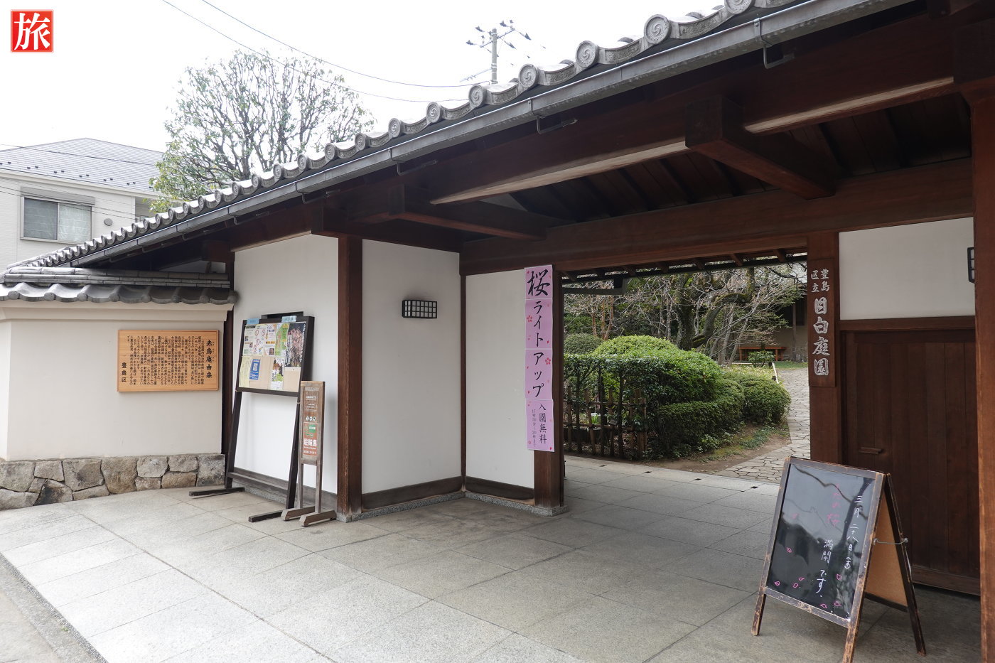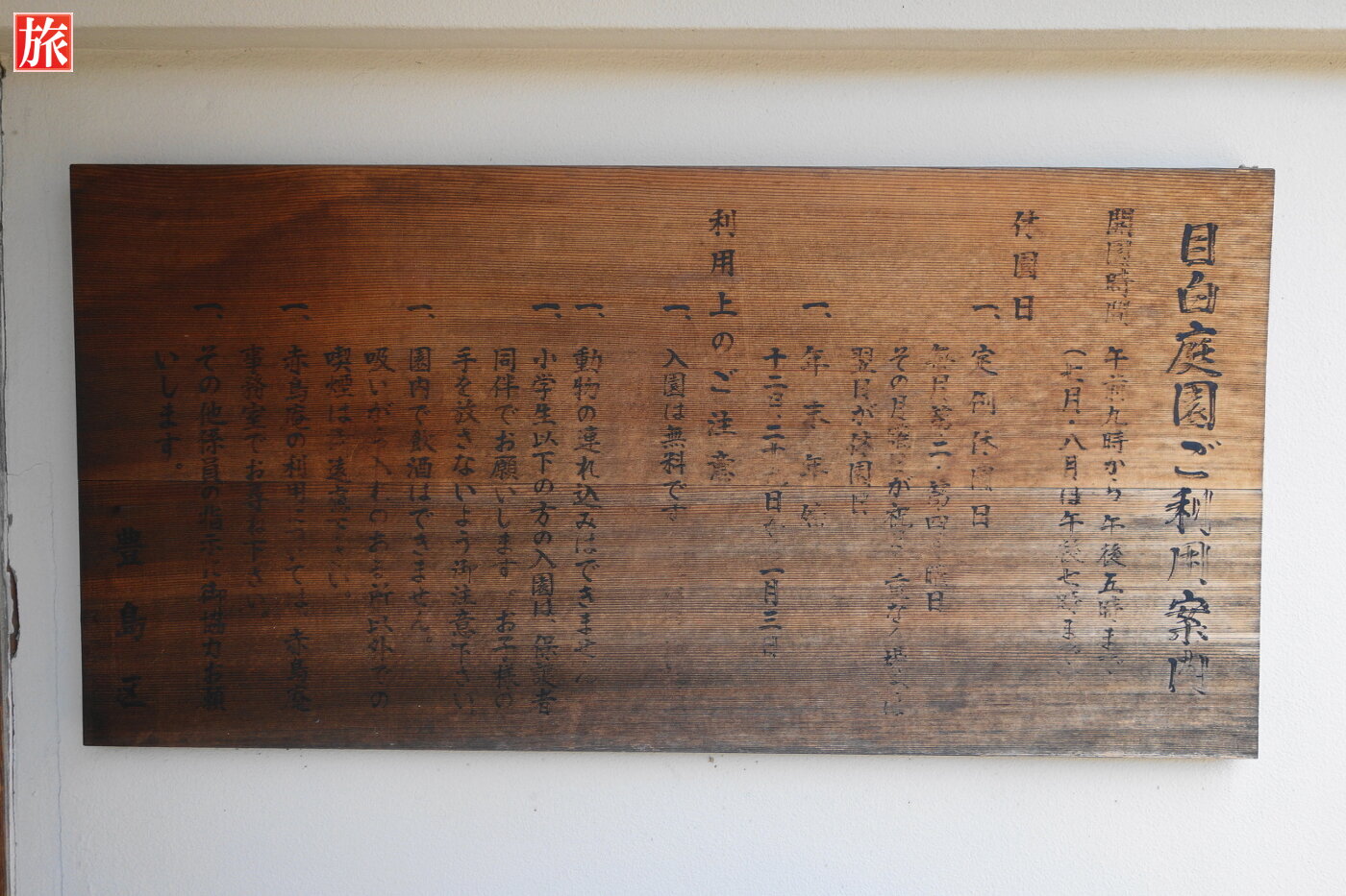 目白庭園入り口です。ご利用の案内板。この門をくぐり中へ入ります。