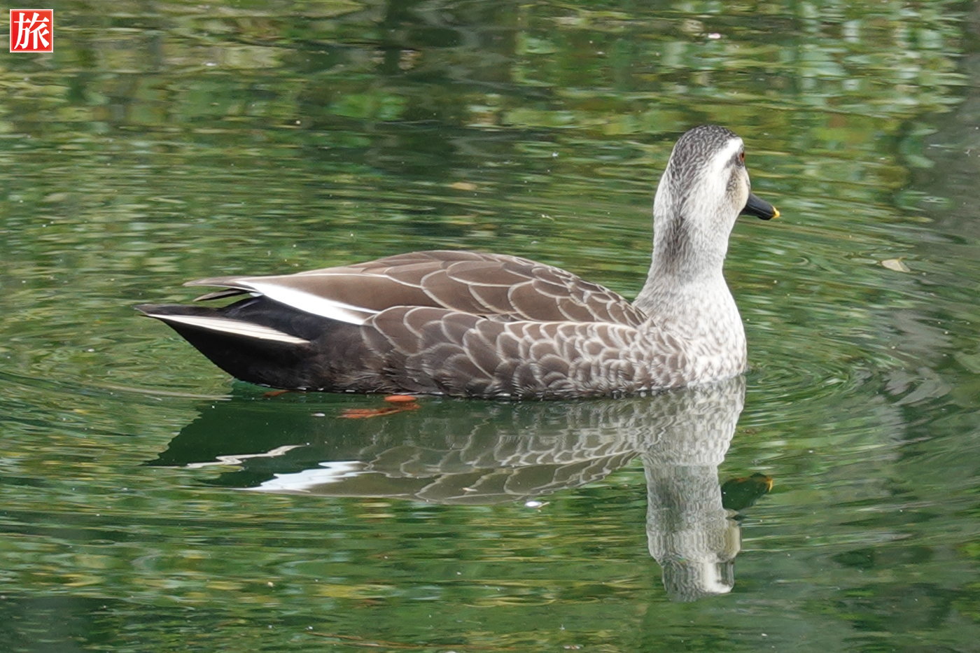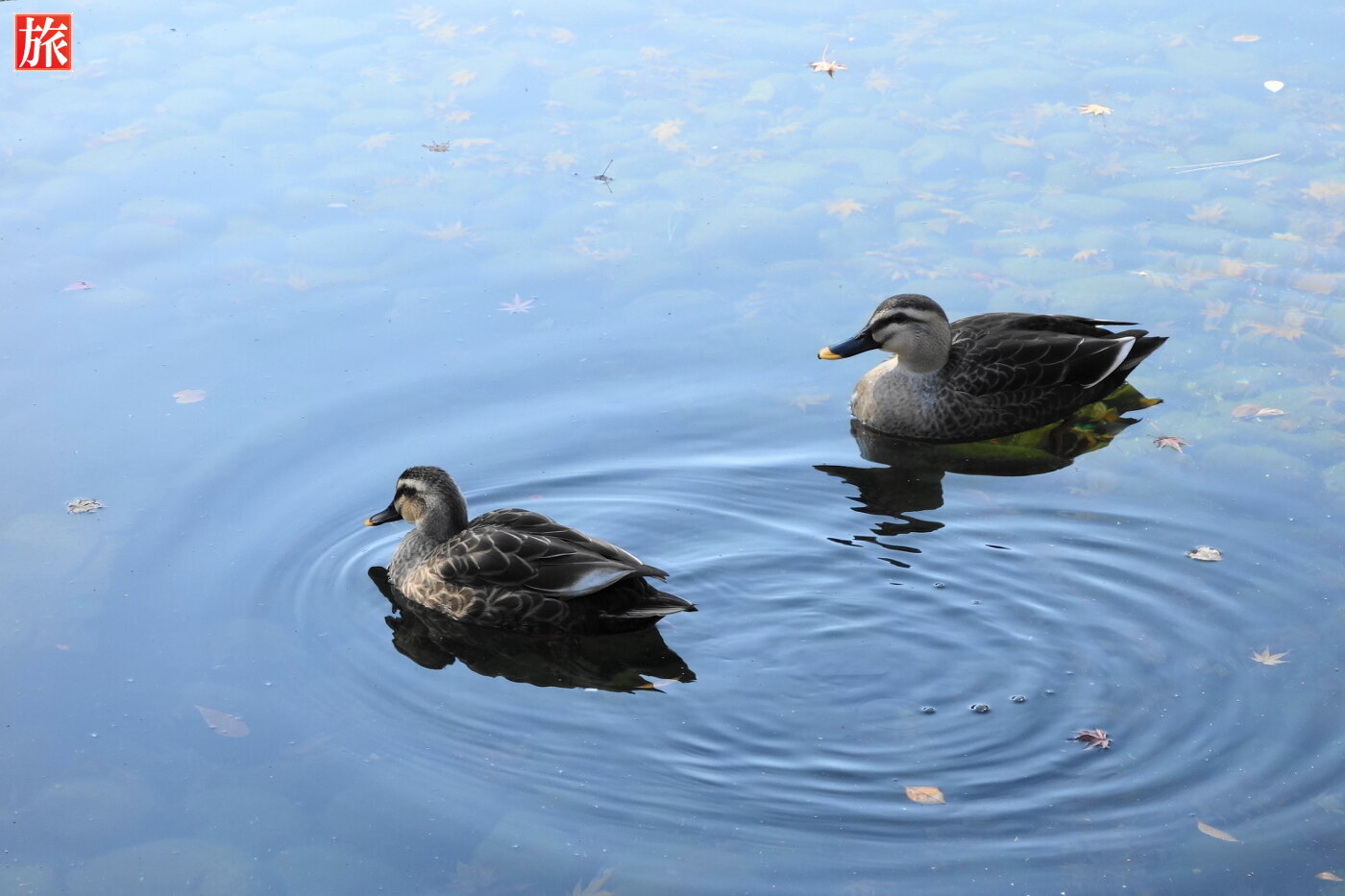 広さ約500m²、深さ約1.2mの池。鴨が気持ちよさそうに泳ぐ。六角浮き見堂。