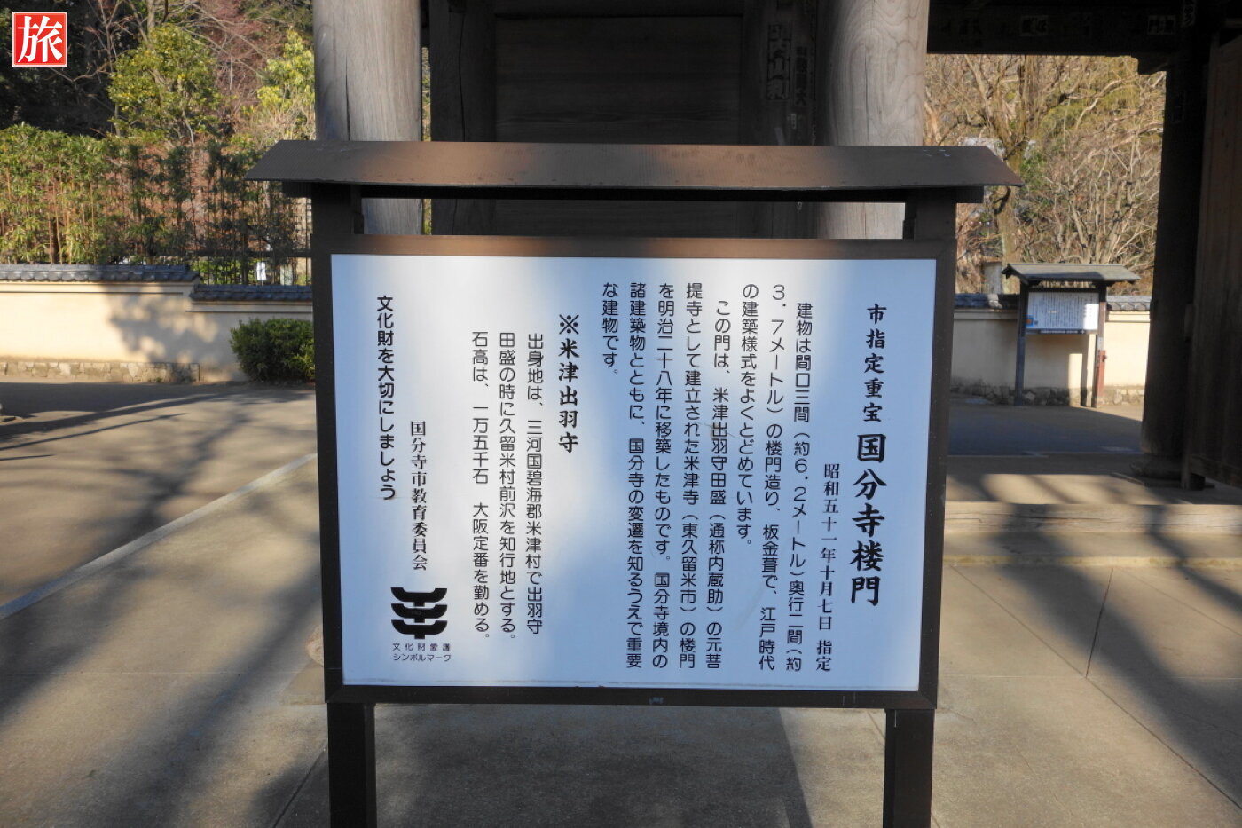 米津寺(東久留米市)の楼門を明治28年に移築した楼門。国分寺楼門の説明。