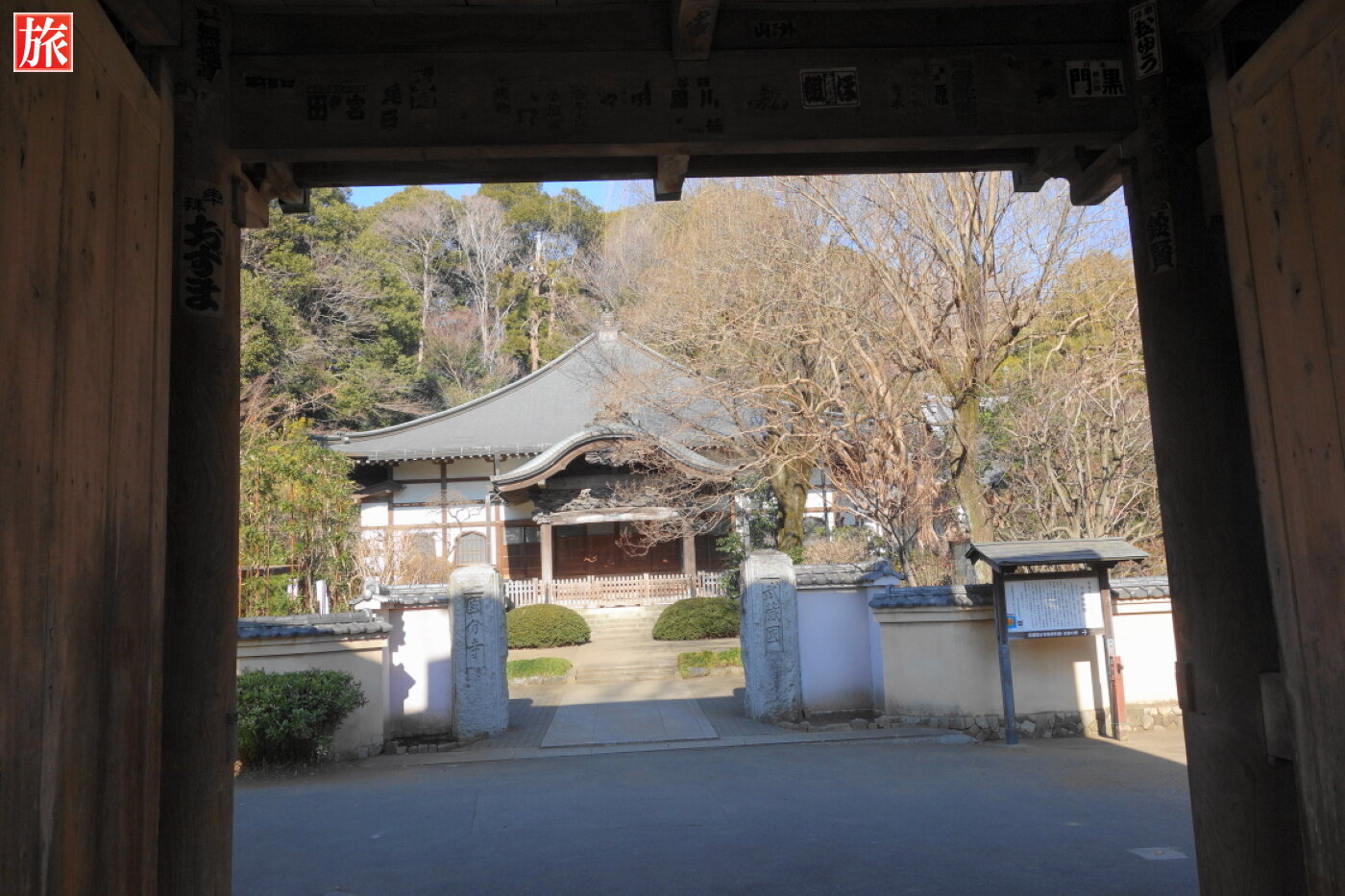 楼門から本堂を眺めた様子。現在の武蔵国分寺本堂。