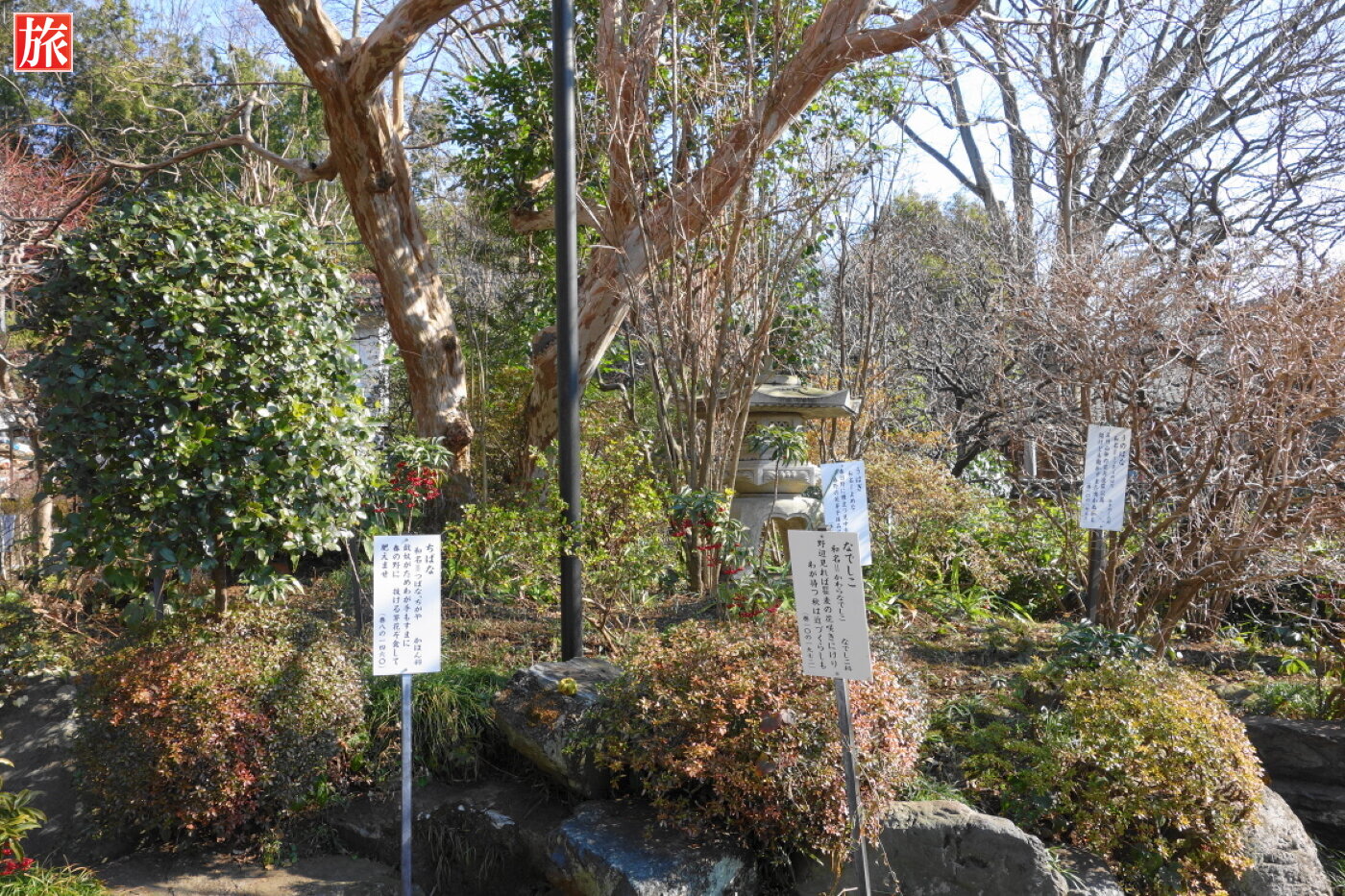 境内にあるは「万葉植物園」。植物園は元国分寺住職が昭和25年(1950)-38年(1963年)の間に万葉集に歌われた植物160種を集めて造ったとのこと。万葉植物園の説明。