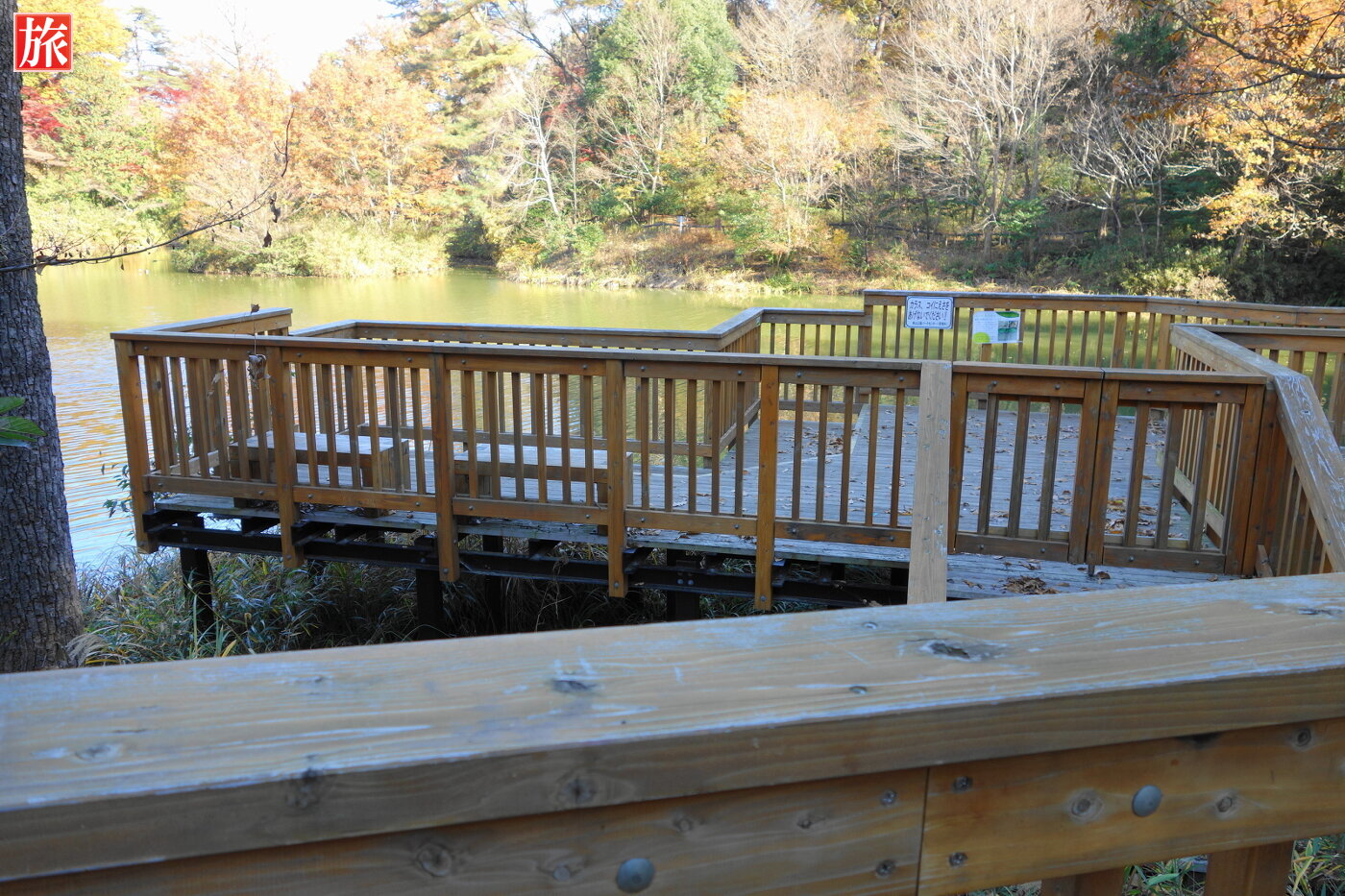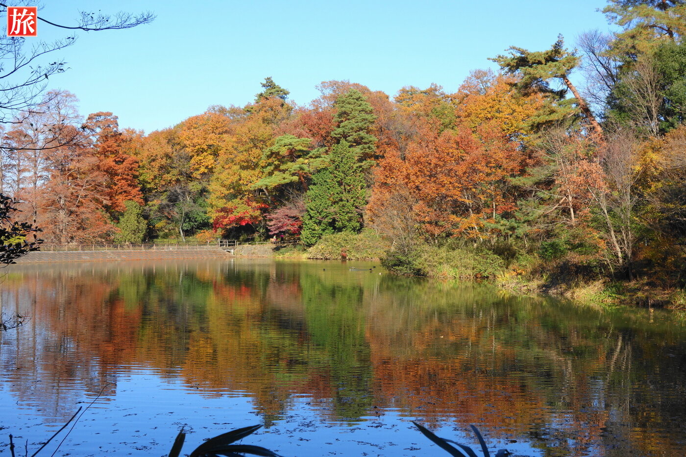 静まりかえった池面に映し出される紅葉がとても綺麗でした。