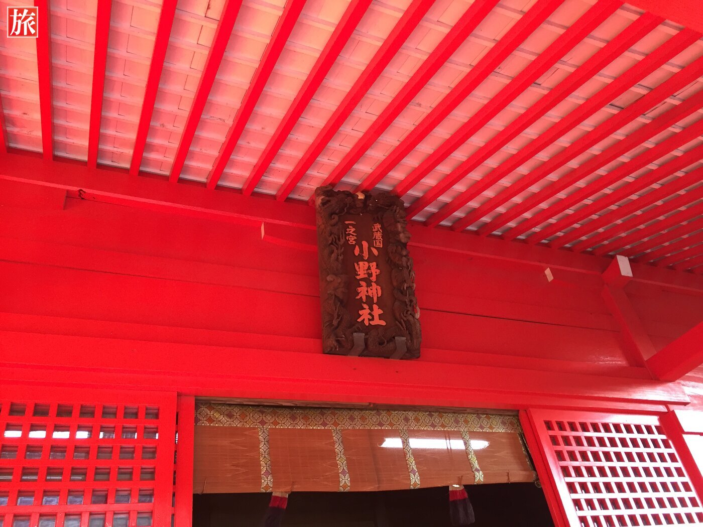 当社は安寧天皇一八年二月初末の日御鎮座と伝えられ武蔵国開拓の祖神である天下春命(あめのしたはるのみこと)を主神として御奉祀申し上げて居る由緒ある神社である。御社名は上代此地の呼び名であった小野の郷に由来するものであるが其の霊験の灼かなる神社としてやがて朝廷の上聞にも達せられ数々の奉幣にも預かり元慶八年七月には正五位上の神階を授けられた。又、廷喜式が撰せられた折には武蔵国八座の一社として登載された。且つ国府の近在なることに由いて国司や住民の崇敬も殊の他篤く総社六所宮創建の砌には東殿第一次の席を与えられて一之宮と称された。然して当社の社伝には永承六年源頼義陸奥守に任せられて下向の途次其子義家と共に参籠され太刀一振りと詠歌一首奉納の事績が繙かれ吾妻鏡にも養和元年四月一宮は吉富井蓮光寺と併記され更に建久四年八月の刻印ある経筒の銘に一宮別当松連寺が記録されている。稍時代も下り安居院の神道集並に深大寺の僧長弁の私案抄を尋ねると当社は中世以来文珠菩薩を本地となした信仰も行われていた。斯くなる所此の近在は鎌倉末より戦国時代にかけて度々の戦乱や多摩川の氾濫があり当社にも多大の被災が及び衰微したが徳川二代将軍により造営再興された。其の棟札に曰く