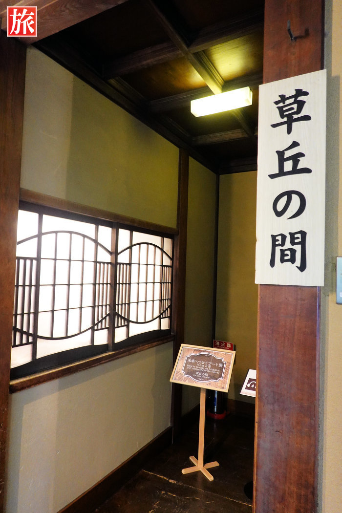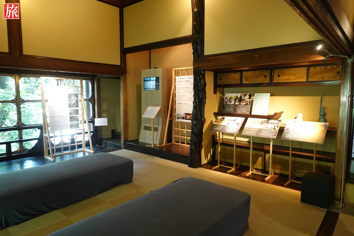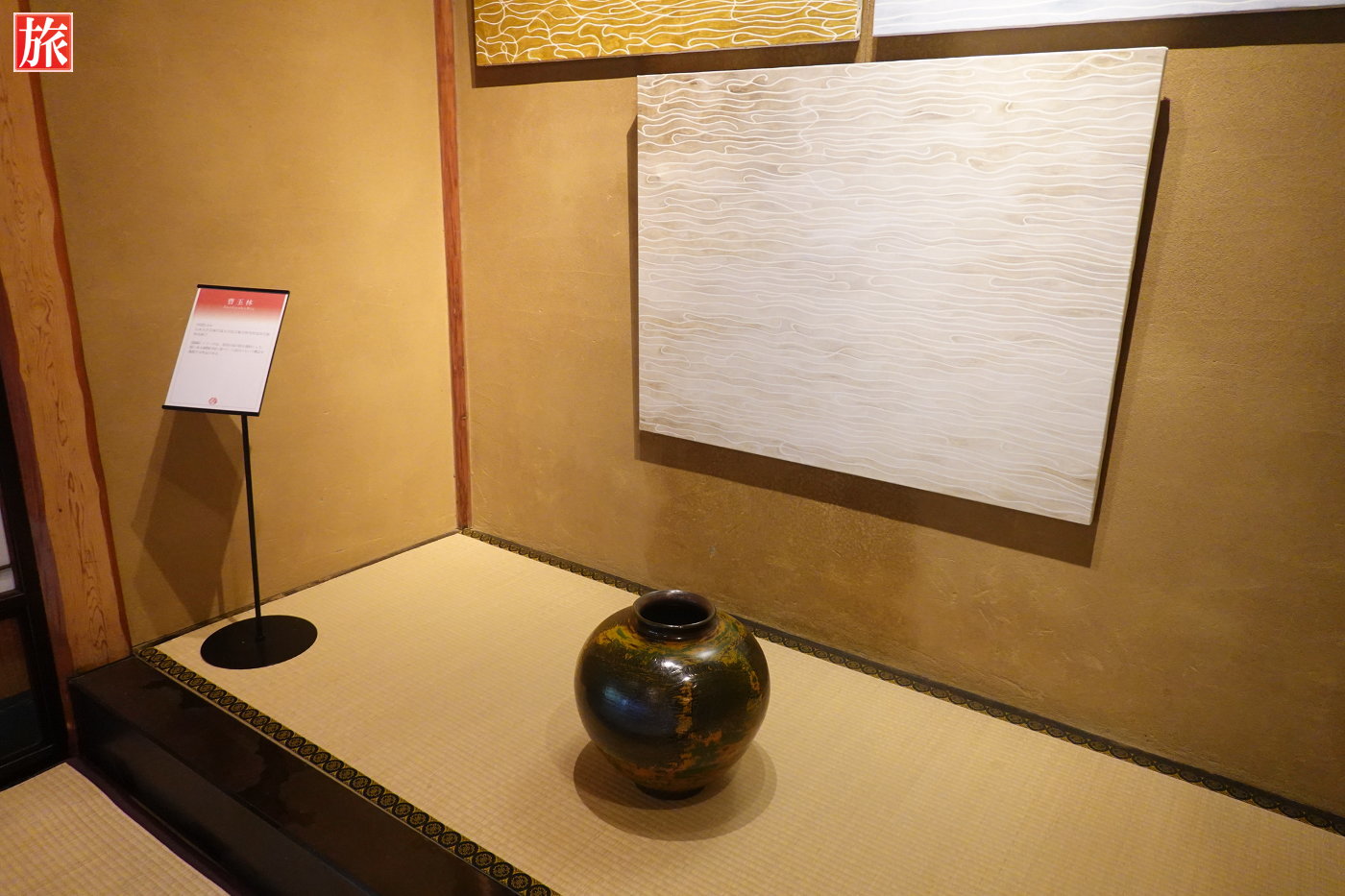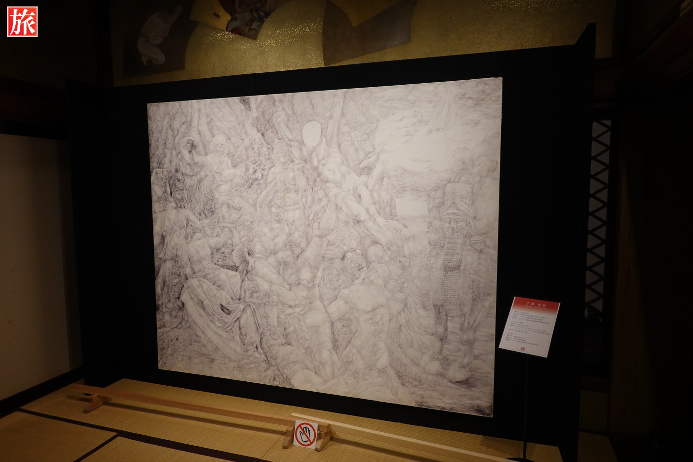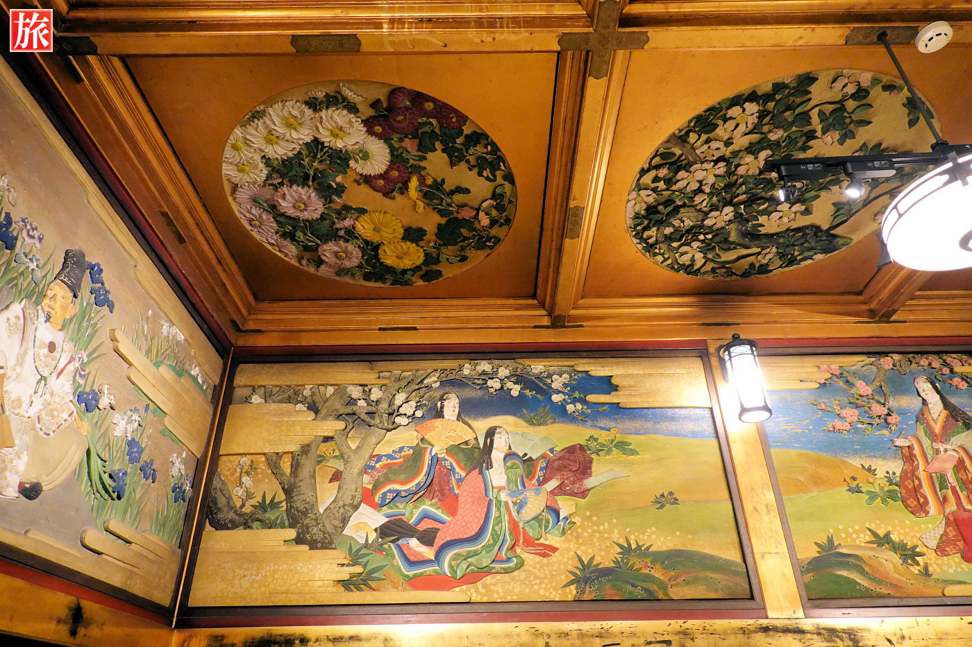 階段で結ばれた各部屋はそれぞれ趣向が異なり、各部屋の天井や欄間には当時屈指の著名な画家達が創り上げた美の世界が描かれています。