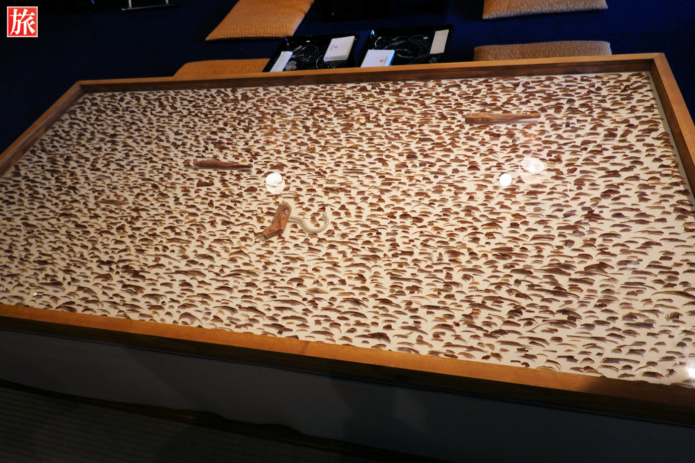 ホテル内 館内には、扇面や美人画、花鳥画などの豪華なモチーフが多く、至るところで螺鈿(らでん)細工や木彫の浮き彫りが見られます。