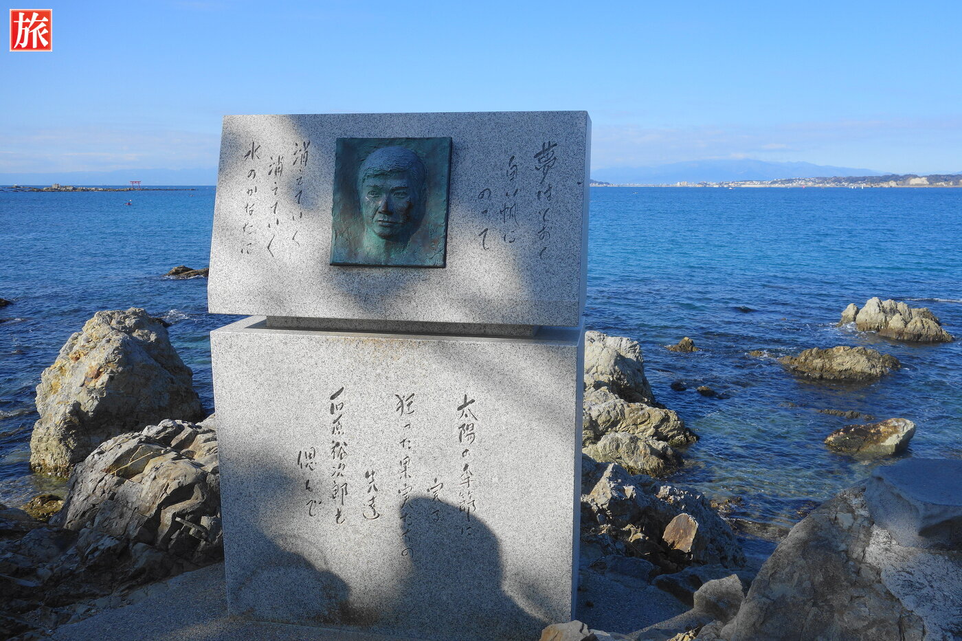 本殿の裏手。石原裕次郎の記念碑。「消えていく・消えていく・水のかなたへ」