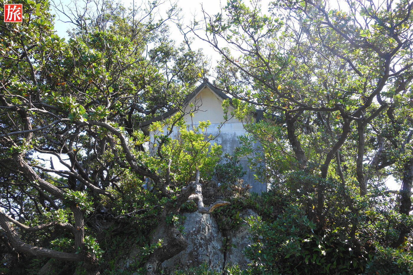 橋を渡り右手は石の階段があり、断崖上には石室神社(船乗りの守り神)が有ります。