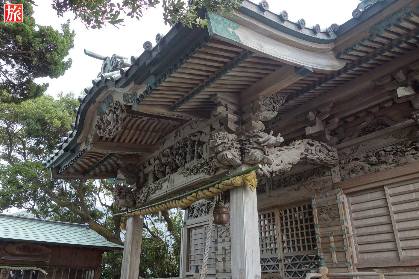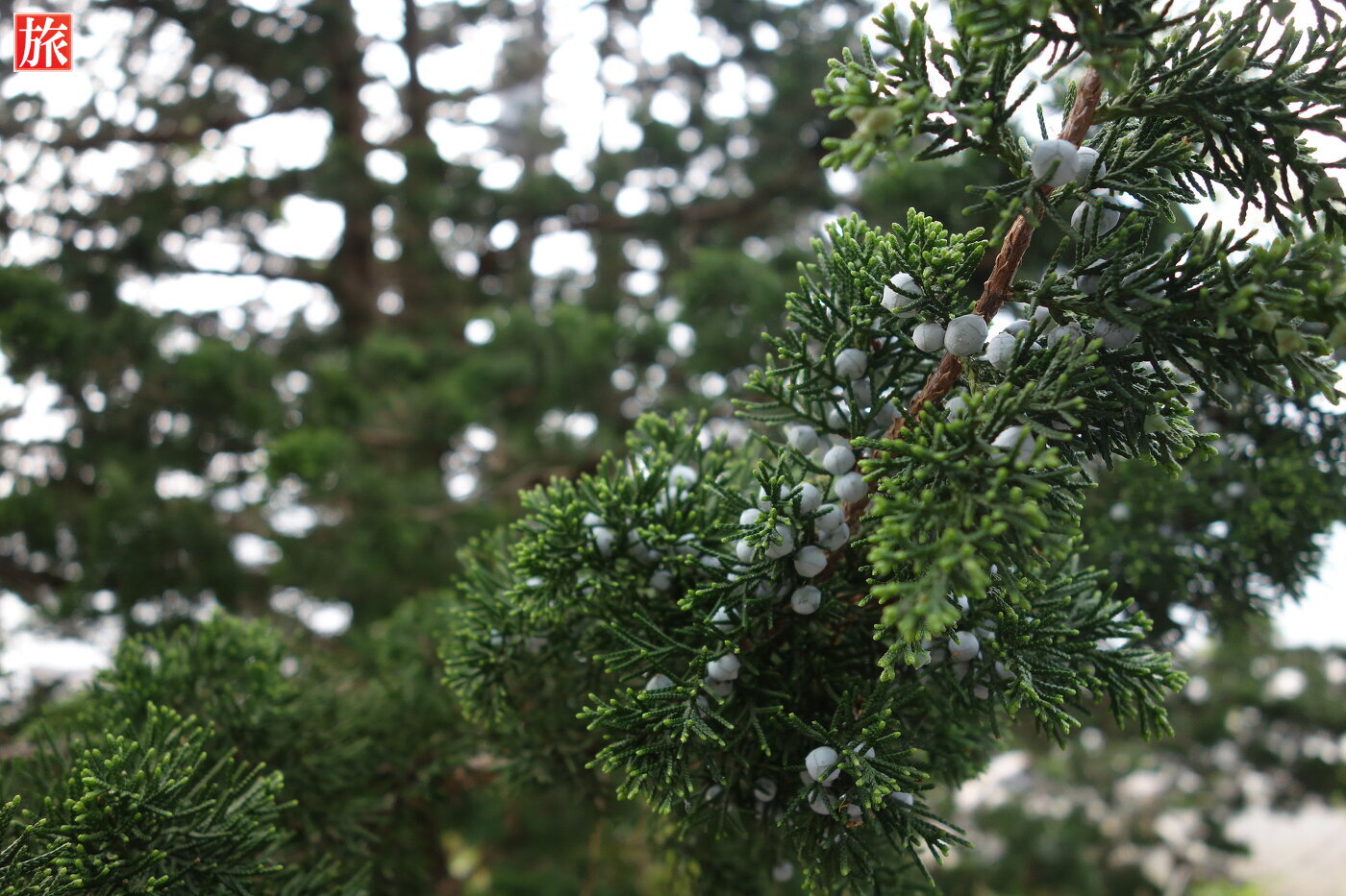 大瀬神社(引手力命神社)はダイビングスポットで有名な大瀬岬にあり、ビャンシン樹林に囲まれていました。ビャンシンの球果はジュニパーベリーと呼ばれ、ジンの香りづけに使われるそうです。