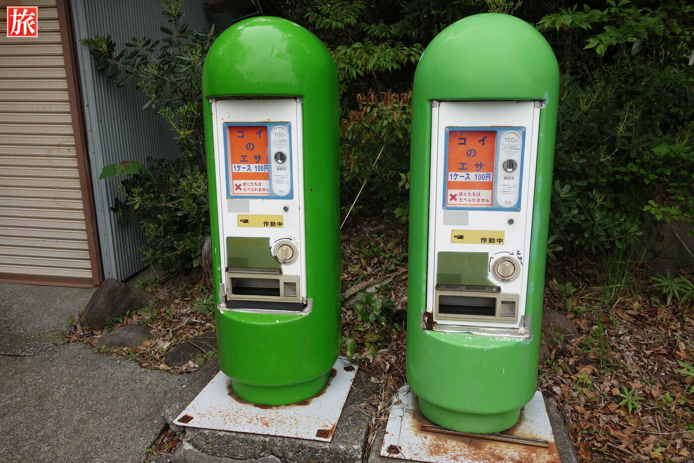 神池には鯉やフナ、ナマズなど淡水魚が多数棲息しているそうですが、海の近くなのに淡水(伊豆七不思議の一つ)・・・という不思議な池です。鯉のエサを売る自動販売機があり、群がる鯉にエサを与えてみました。神池には「青い龍」が横たわっていると紹介されパワースポットとして有名な場所でもあります。