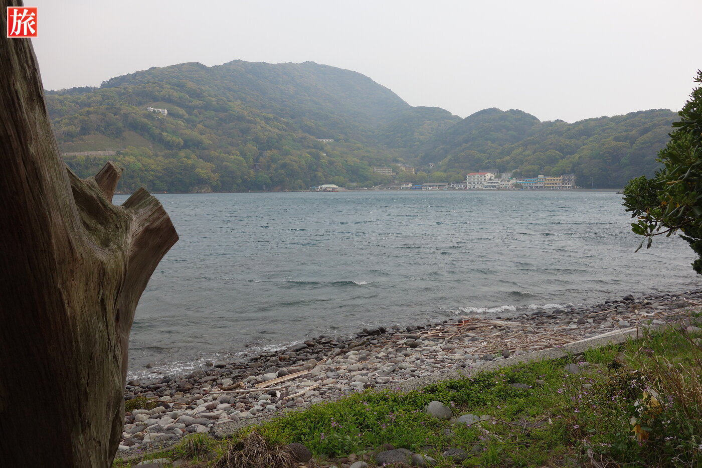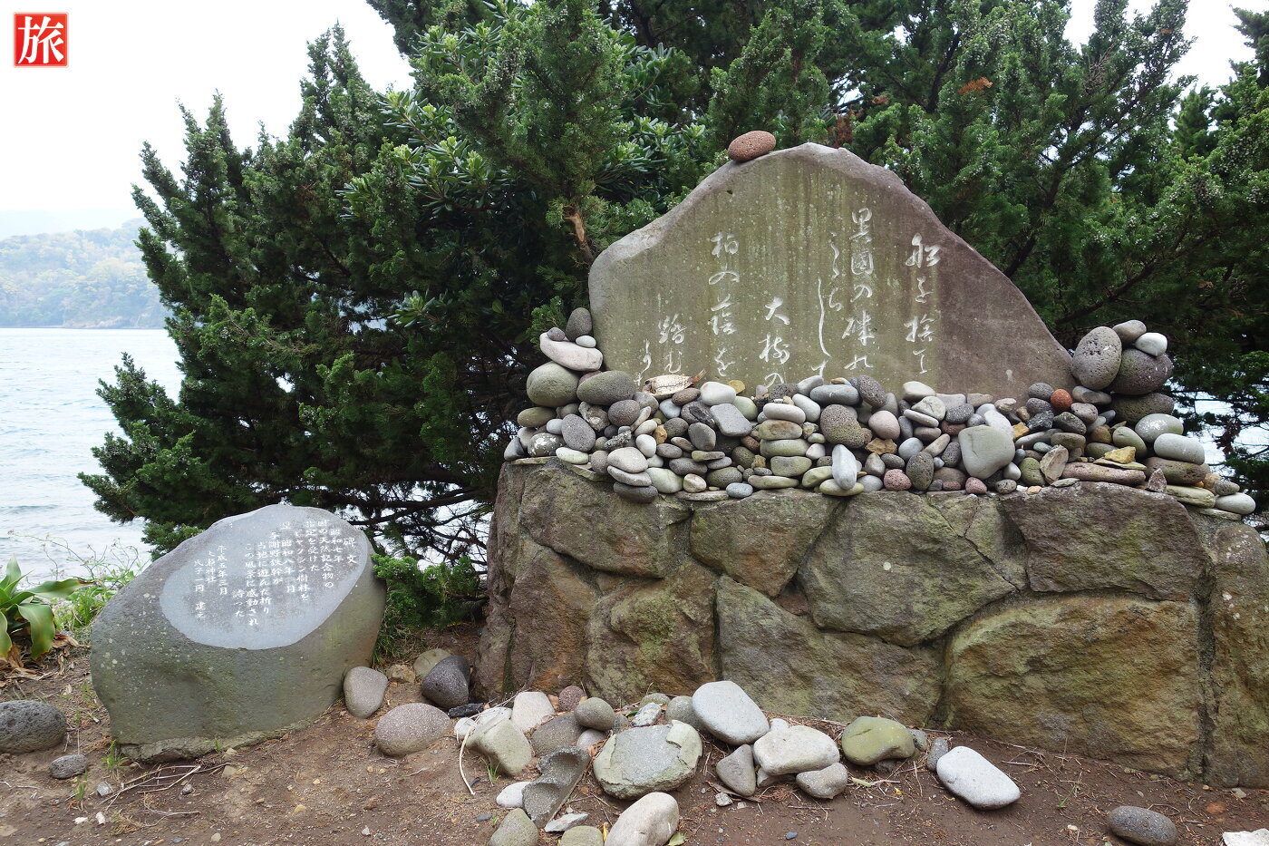 神池を周回していると海側に石碑がありました。神池の直ぐ脇の海岸。