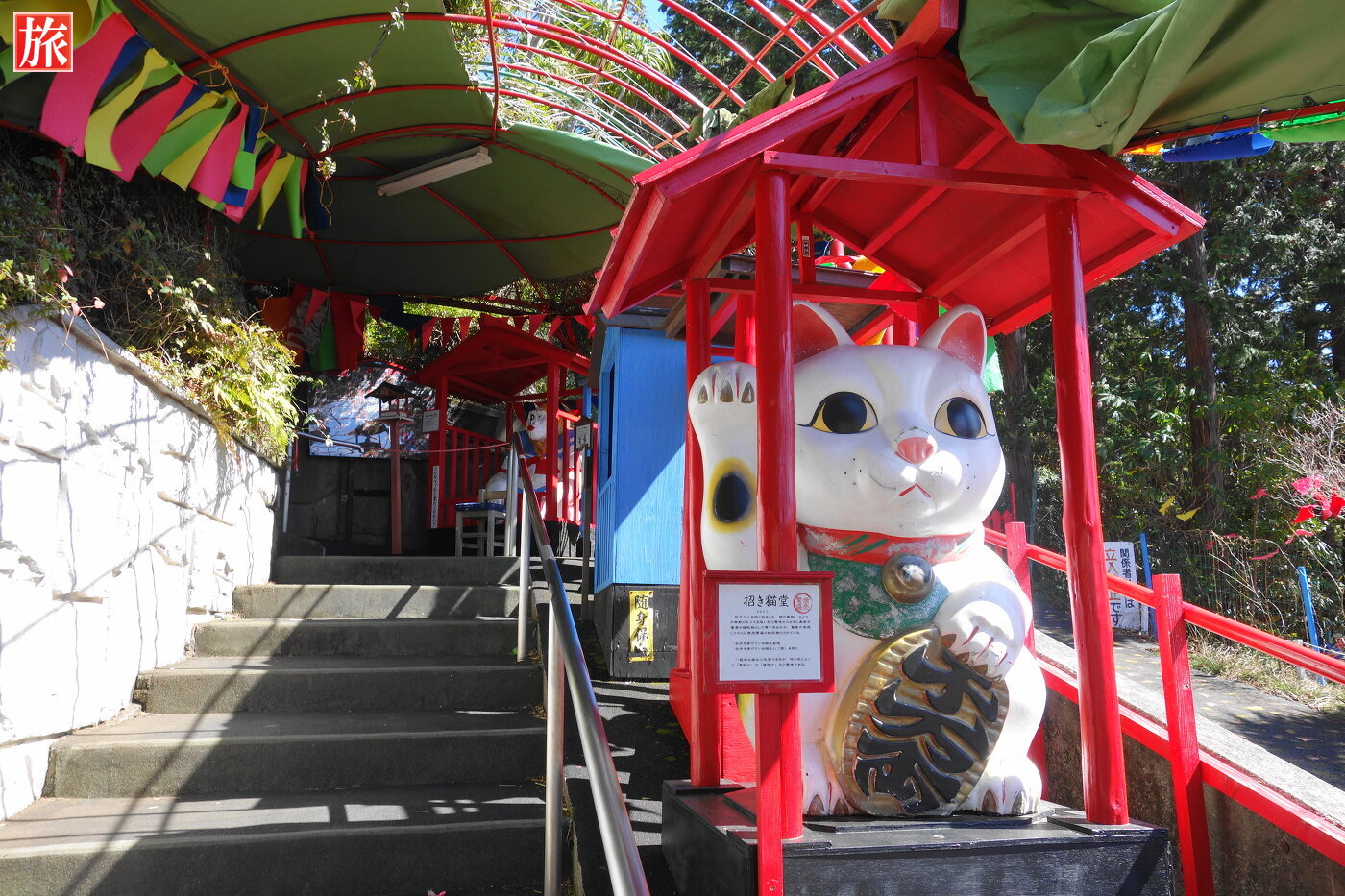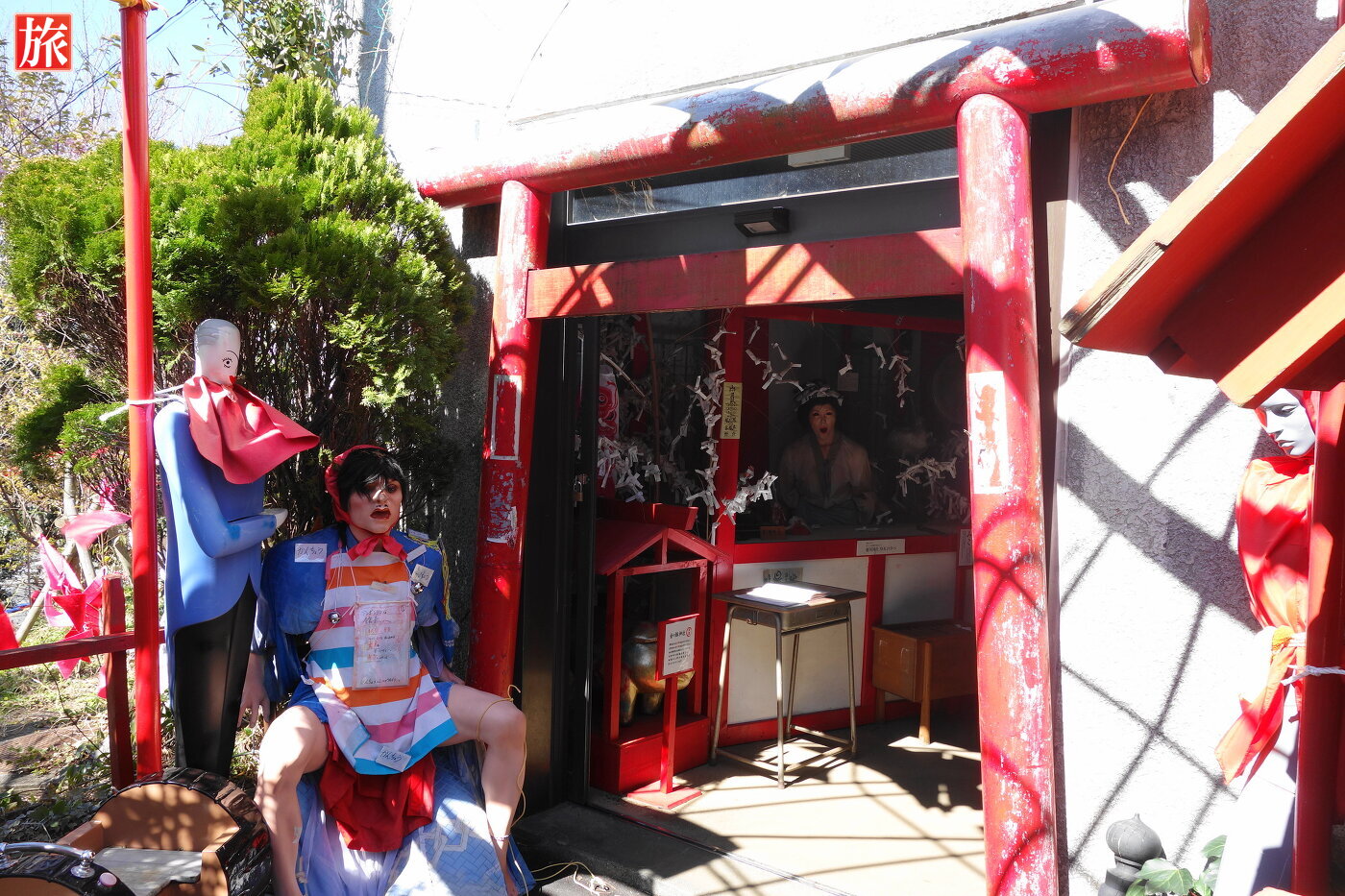 奇妙な人形達がお出迎え!入場受付に続くエントランスならぶ招き猫堂・トモダチ神社・・・