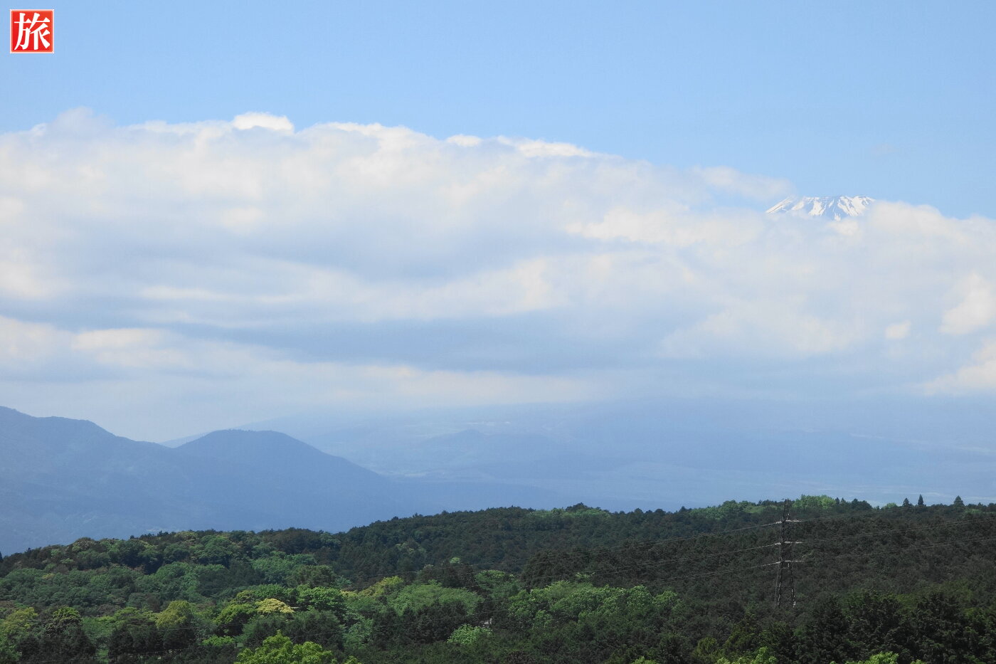 雲の上に顔を出す富士山!渡る途中振り返ってみた様子。中間地点。