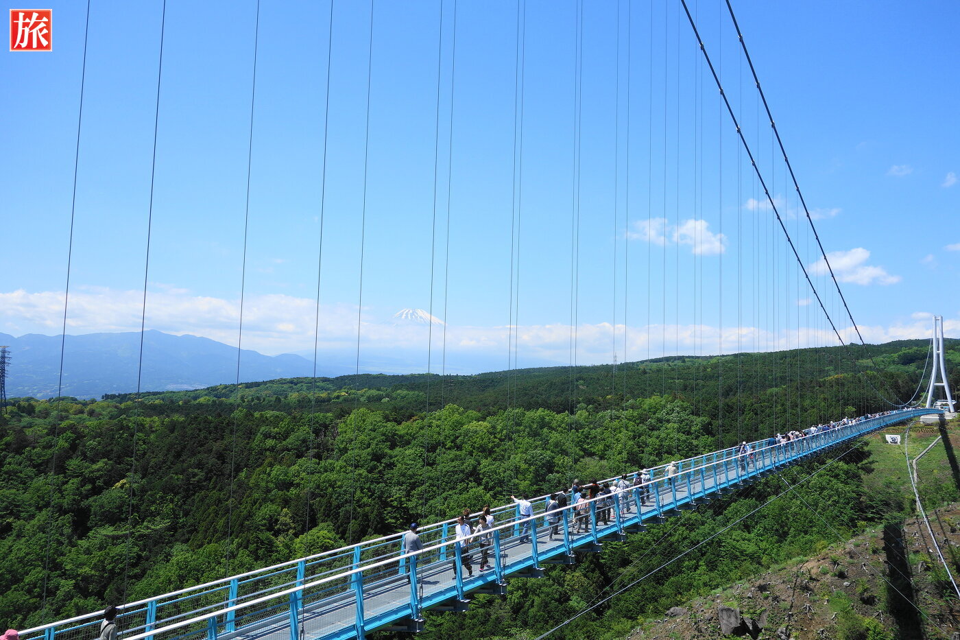 歩行者専用吊橋としては日本一の長さで、富士山や広大な駿河湾、折り重なる伊豆の山並みといった絶景が一望できます。