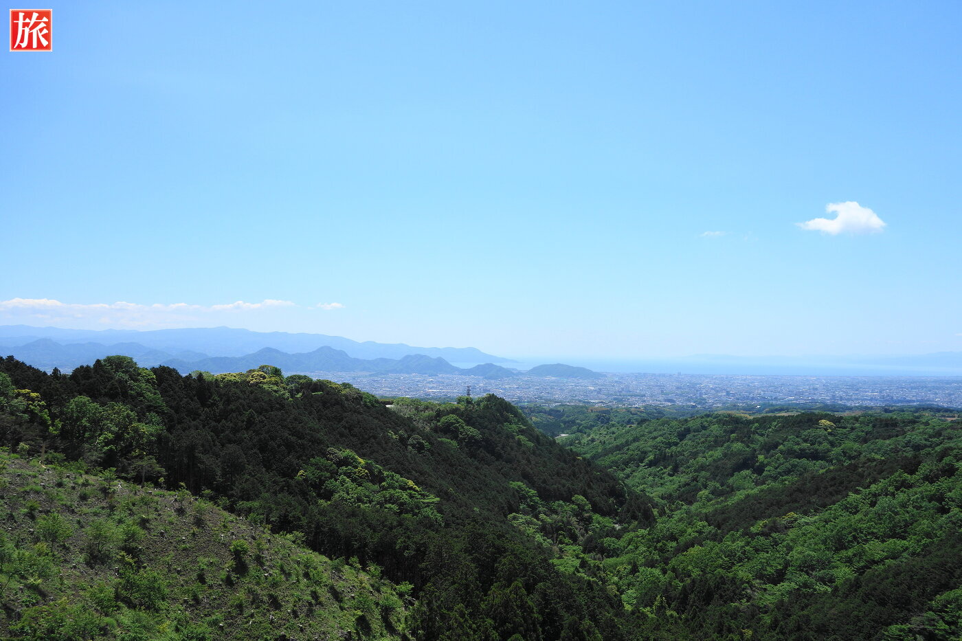 展望デッキ(北側)からみた三島市・沼津市方向の風景。富士山方向を望む。南側のゲート付近。
