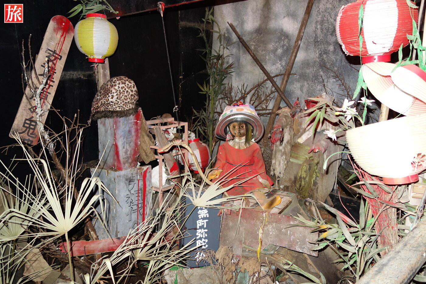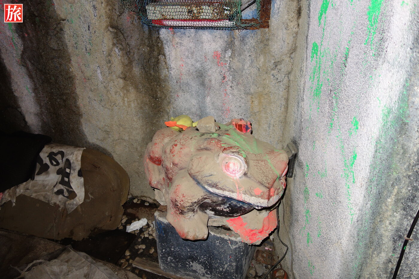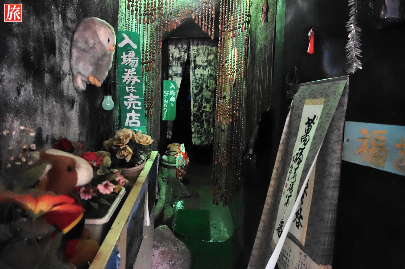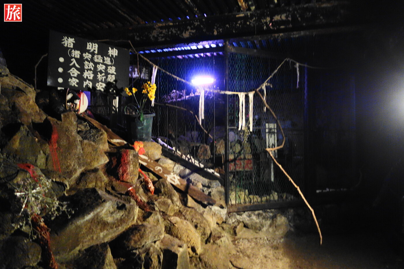 ガマ洞窟入口。謎めいた洞窟へ・・・中は暗闇です。洞窟奥には猪明神も祀られていました