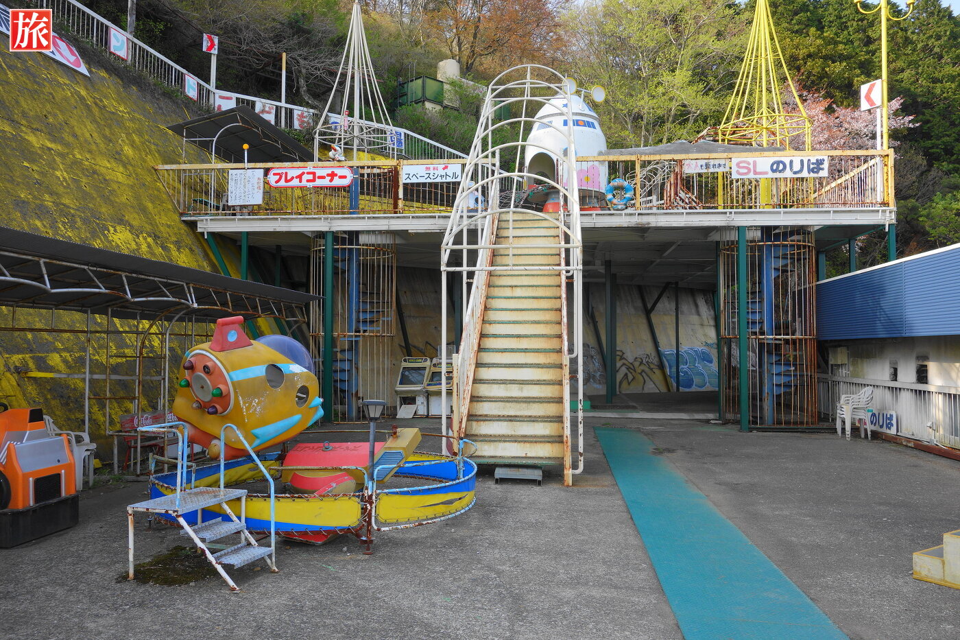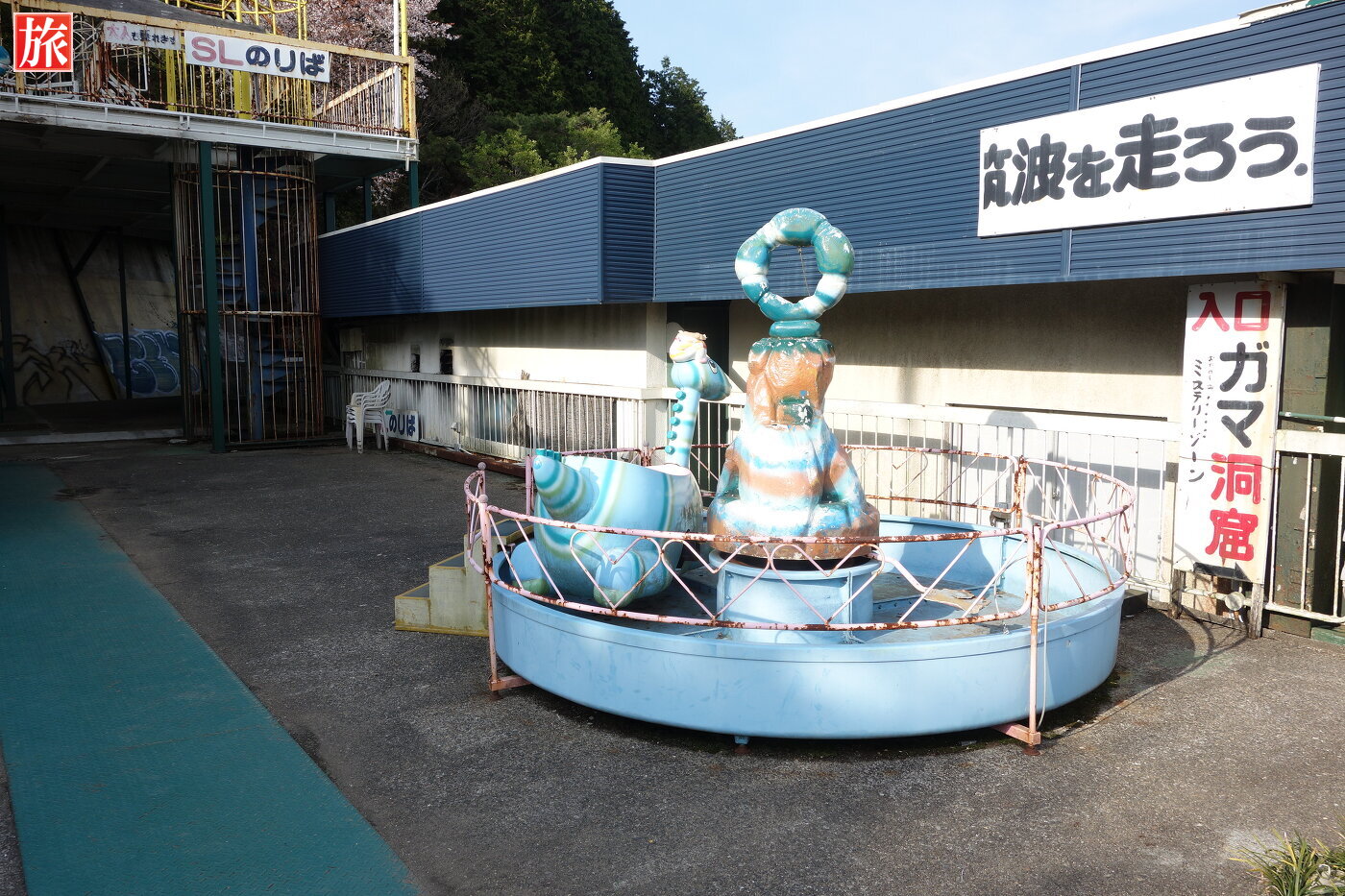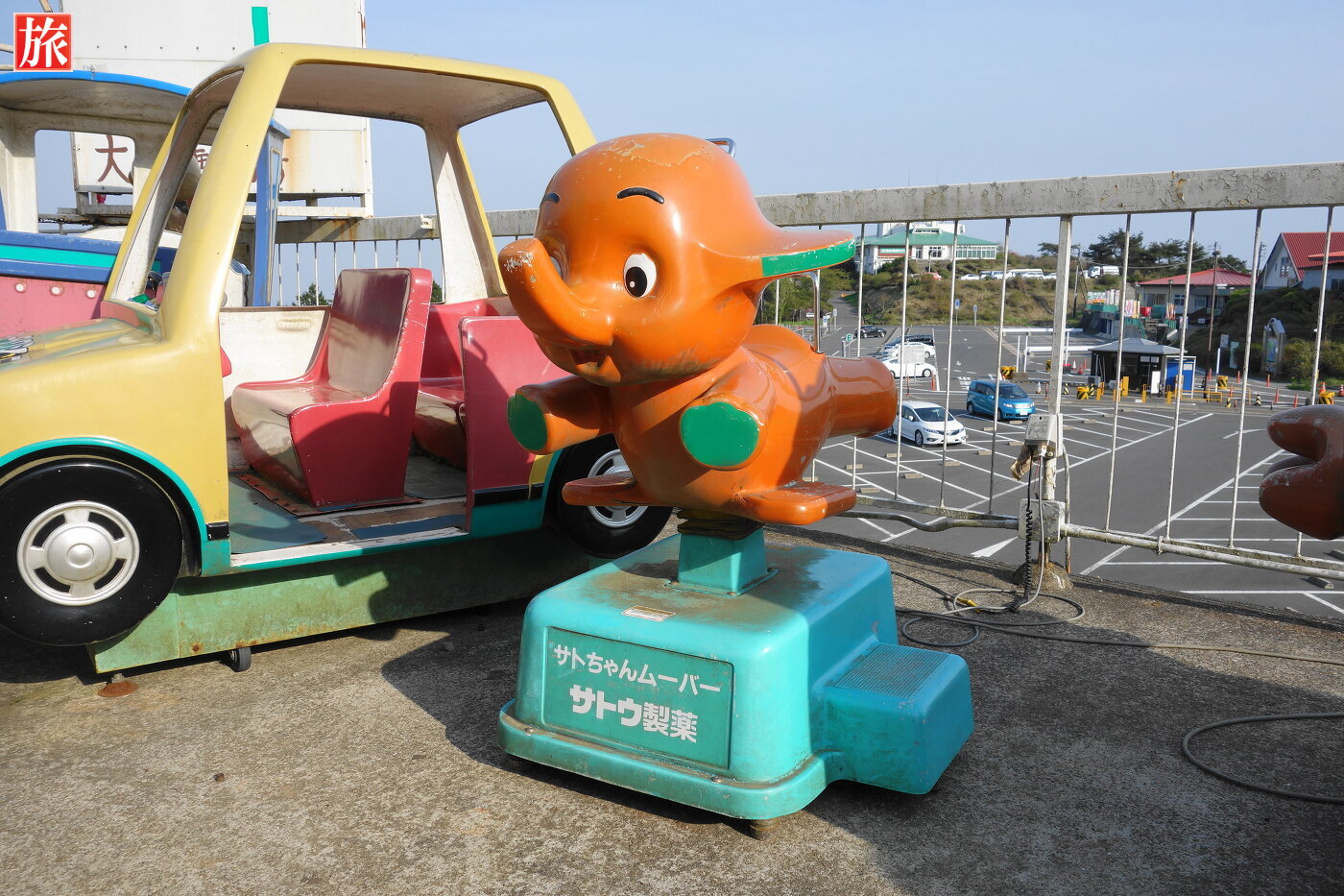 売店2Fには古めかしい遊具が設置された「アトラクションゾーン」・・・一応コンセントに電源が刺さっていましたが、動くのか貯金箱状態か分かりません。
