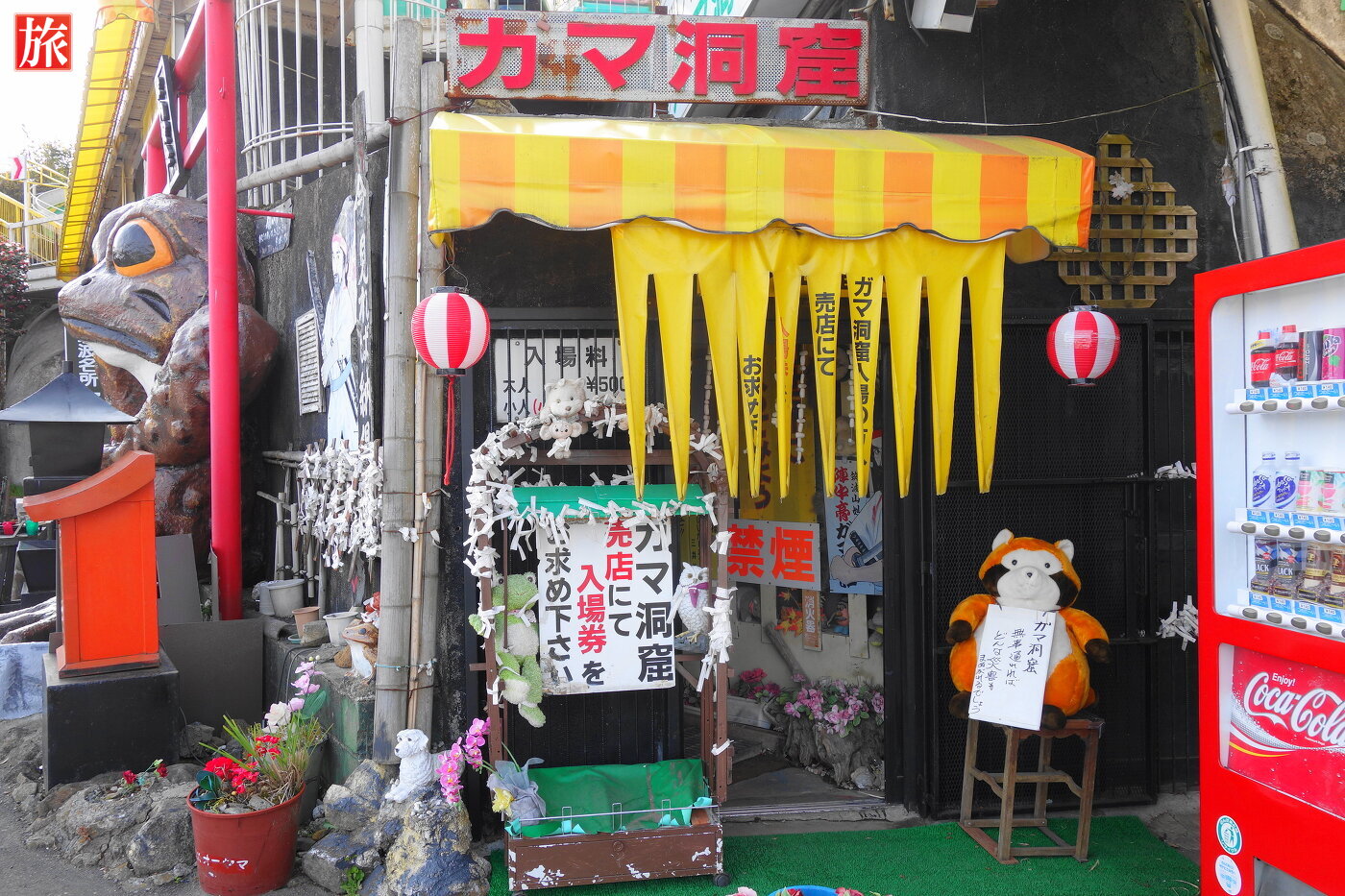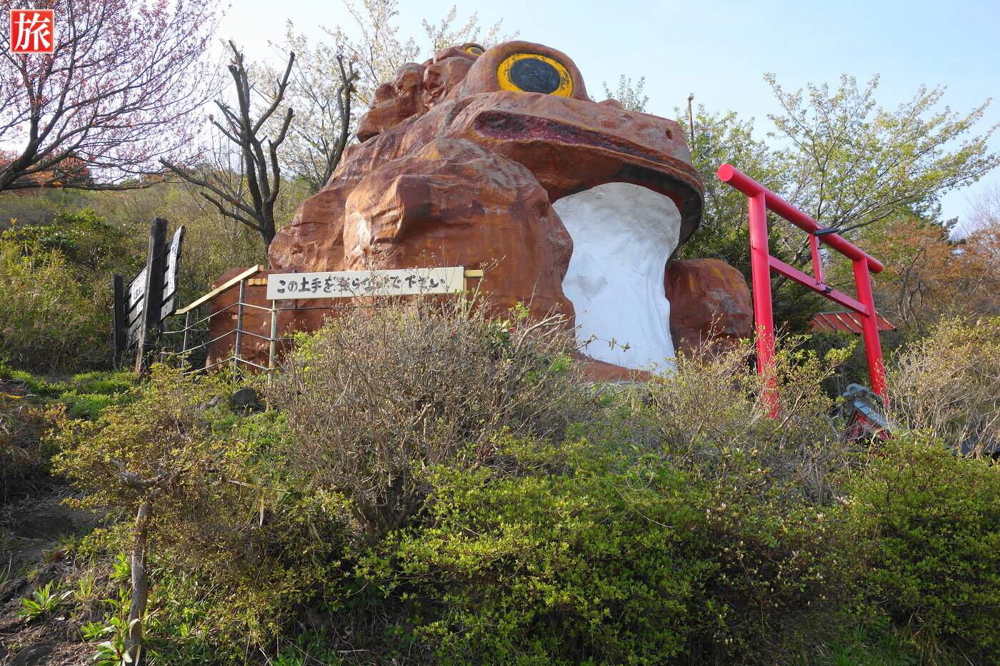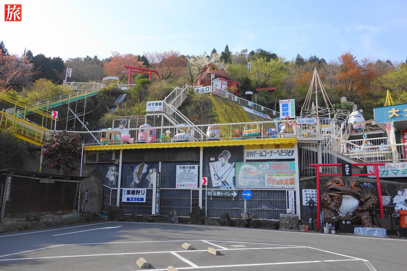 ロープウェイが通るつつじヶ丘駅の一角にあるガマランド。「ガマ大明神」、「アトラクションゾーン」、「ガマ洞窟」 に分かれています。