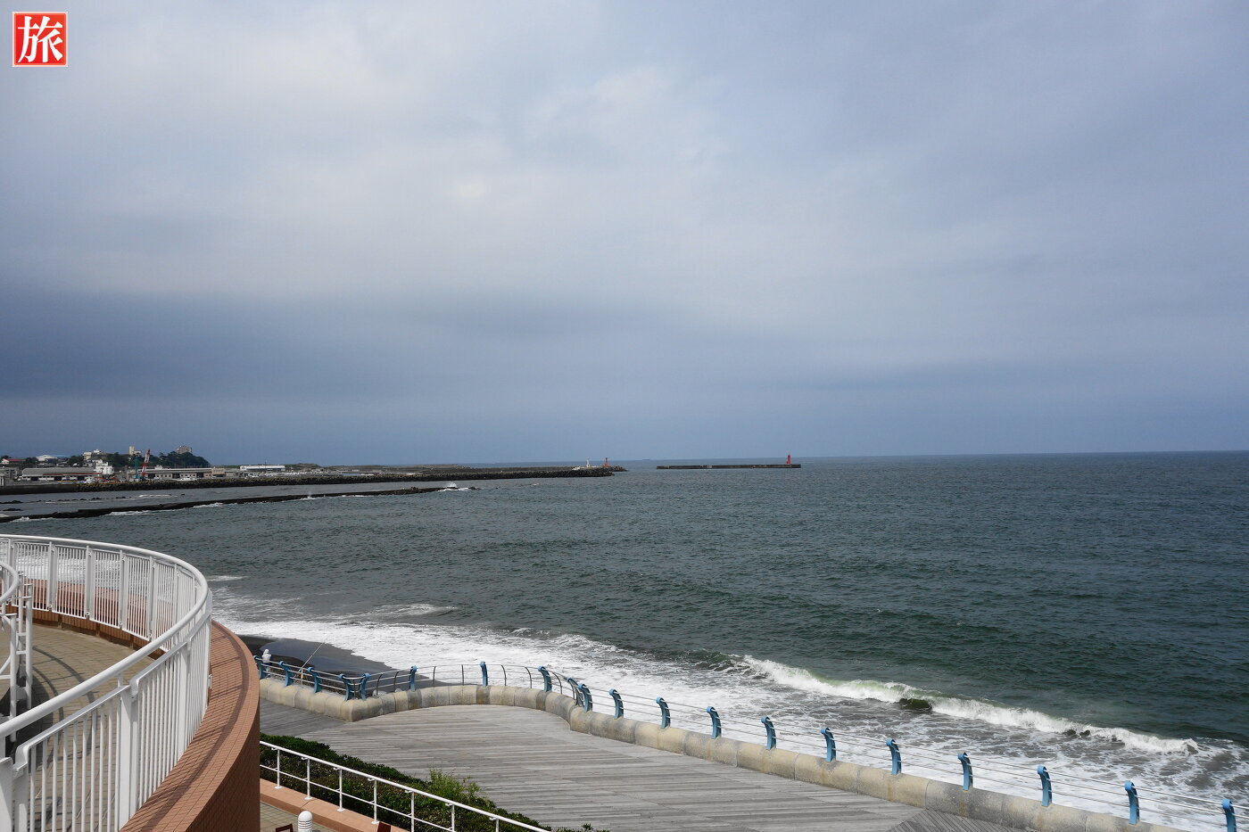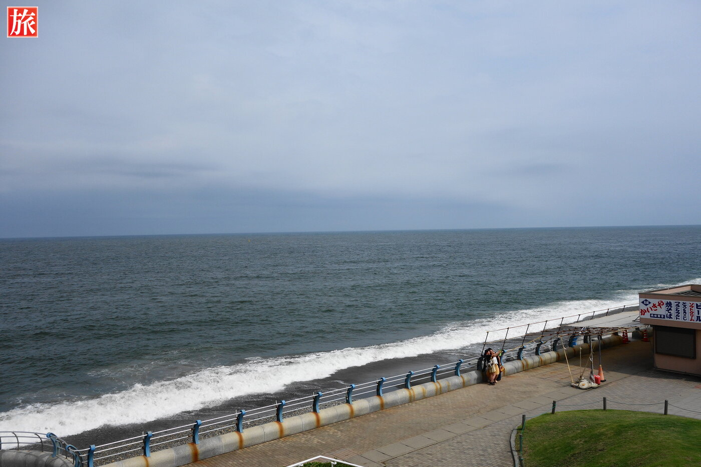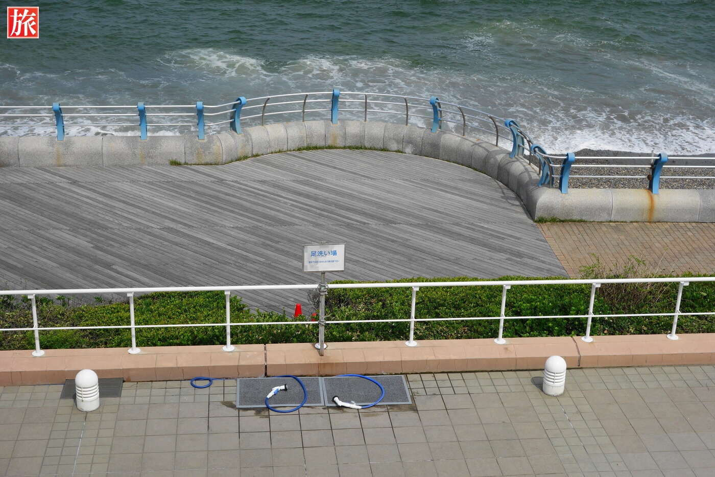 水族館は海に隣接しています。大洗海水浴場方向。那珂湊方向を望む。足洗い場がありました。