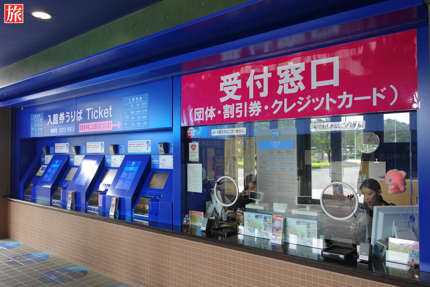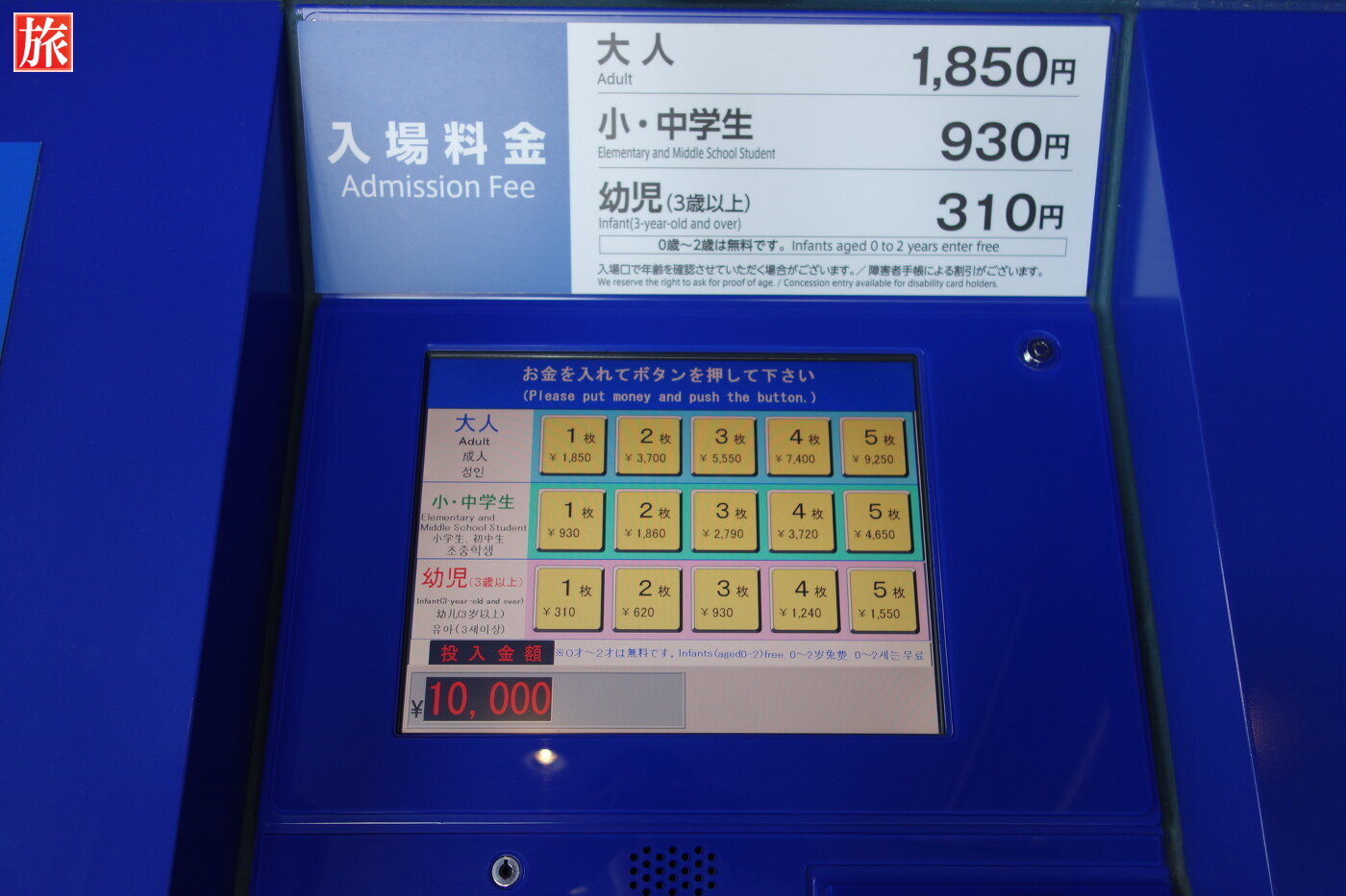 左手で入館券売り場でチケットを購入します。大人一人1850円です。入館券チケット。