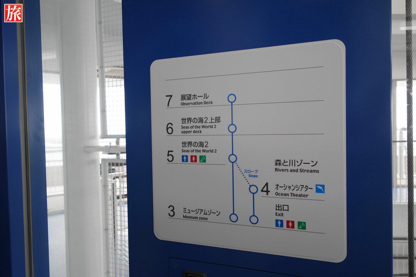 世界最大級のマンボウ剥製(全長3メートル)。3Fのミュージアムゾーンからエレベータで展望ホールに向かいました。展望ホールから下を眺めた様子。