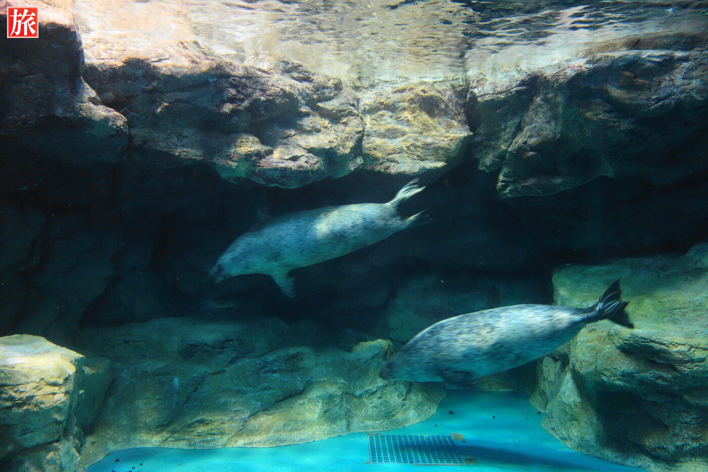 世界の海ゾーン2には水中を泳ぐエトピリカを観察できます。また、このゾーンいるゴマフアザラシ・タル君は、お得意の直立ポーズが「写真撮影に協力してくれるアザラシ」として「珍百景」に登録されています。どれがタル君かわかりませんでした(;^_^A