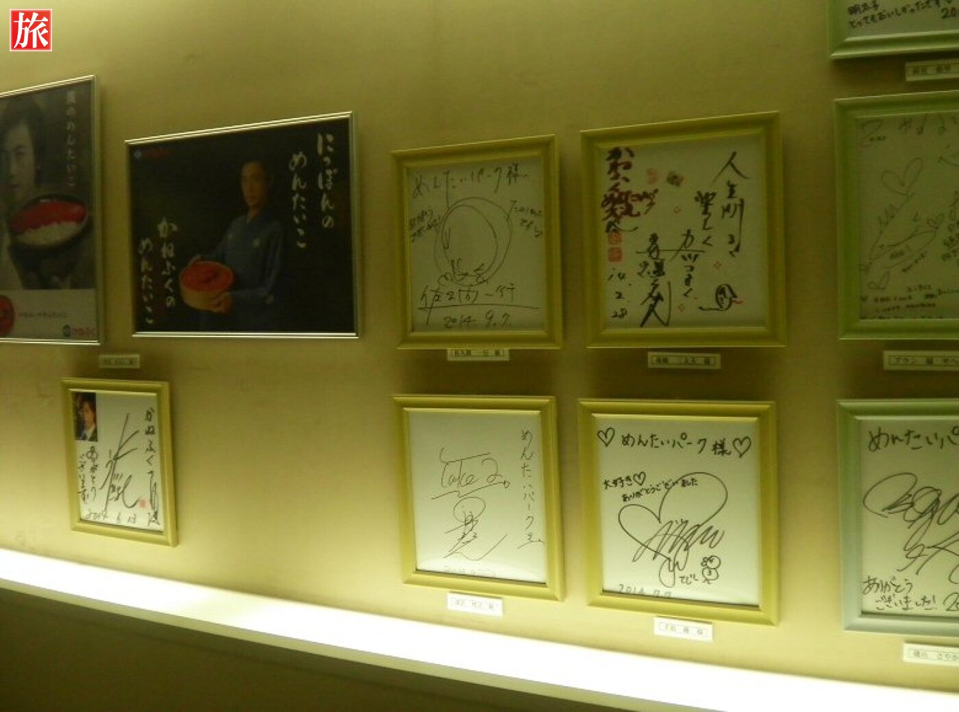 めんたいこ料理のレシピ紹介と、芸能人のサイン色紙も飾られています。