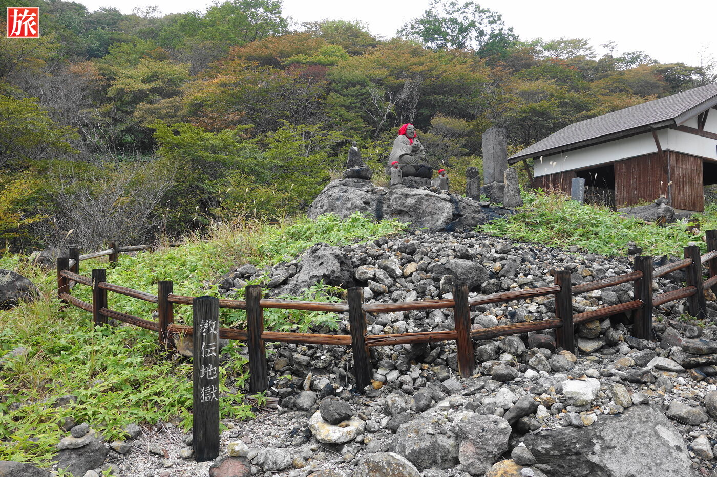 教傳地獄の由来第96代御醍醐天皇の御代(1318)の頃、奥州白河在の五箇村に蓮華寺と言う寺があり、「教傳」と言う住職がおりました。この教傳は生まれながらの不良少年で、心配した母がお坊さんにしようとしてこの寺に預かってもらいました。その教傳も28歳になって、前の住職の跡をつぎ、母と一緒に寺に住むようになりましたが、その行いは少しも直りませんでした。元亨元年(1336?)のことです。教傳は、2・3人の友人と一緒に、那須温泉に湯治に行くことになりました。その日のことです。教傳は、母が朝食を用意してすすめると教傳は教傳はまだ旅仕度も出来てないのにと悪口を言いながら、お膳をけとばしてそのまま出発してしまいました。那須温泉に着いた教傳はある日殺生石を見学しようと賽の河原附近まで行くと今まで晴れわたっていた空が、俄かに(にわかに)かきくもり雷鳴が天地をゆるがし、大地から火炎熱湯が噴き出し、連れの友人はいっせいに逃げ去りましたが、教傳は一歩も動くことが出来ませんでした。ふり向いて見ると「おれは寺を出るとき母の用意したお膳を足げりにして来た天罰をうけ、火の海の地獄に堕ちて行く」と教傳が大声をあげ苦しみもがいております。友人がかえ寄り助けようと引き出したが、教傳の腰から下が、炭のように焼けただれており息をひきとってしまいました。それからも教傳が引き込まれたところには泥流がフツフツと湧いていましたが、いつしか山津波に埋まってしまった。その後、湯本温泉の有志が享保5年に地蔵を建立して供養を行い、親不孝のいましめとして参拝する者が後を絶たなかったと言うことです。