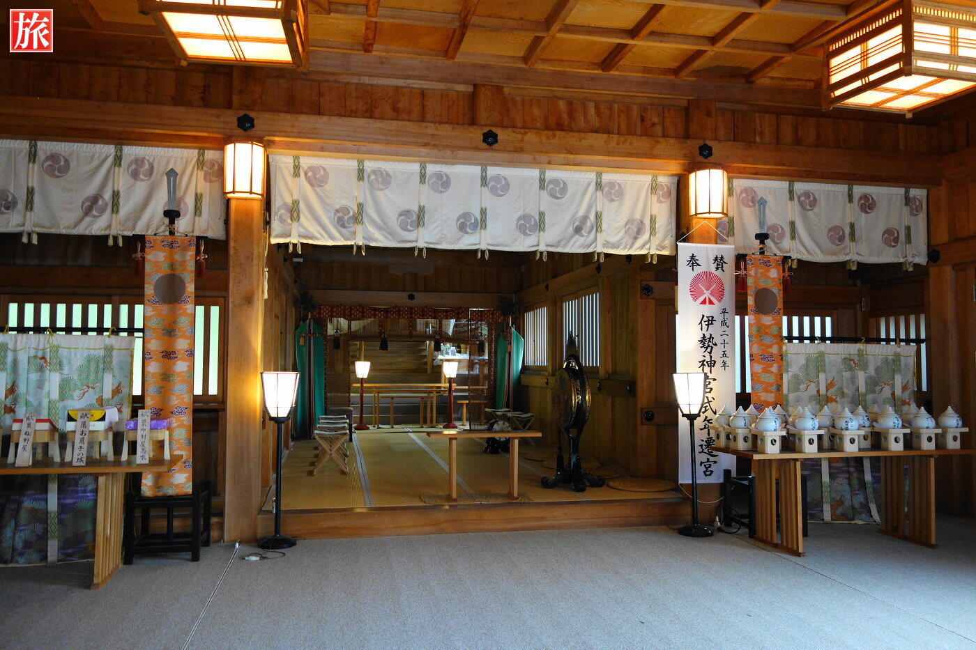 二の鳥居の左手には愛宕神社入口がありカエルの石像があります。その隣にある水琴窟。少し参道を進んだ左側には祖霊社が鎮座。伊勢神宮参拝記念碑。