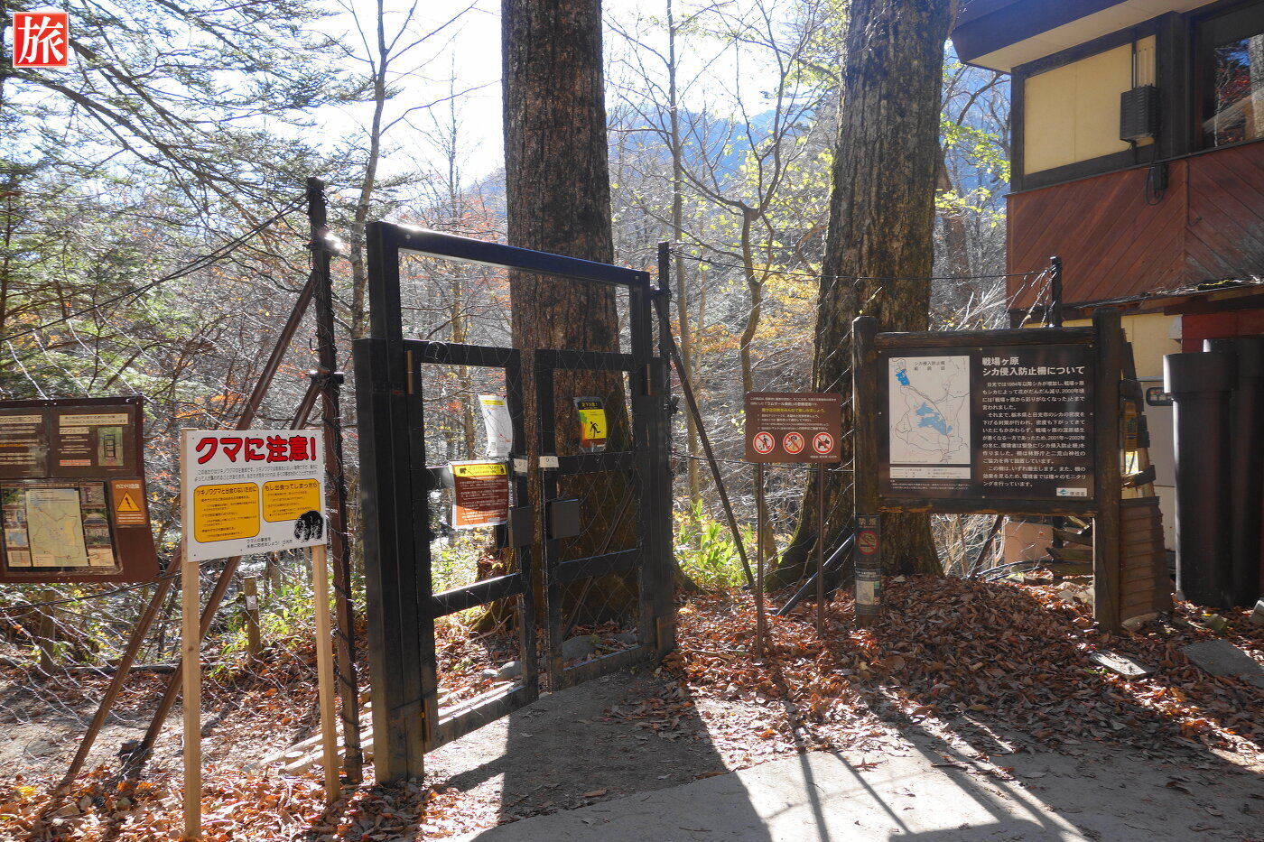 戦場ヶ原から北上するハイキングコースの途中に位置します。ハイキングコース出入口には鹿侵入防止柵が設置されています。観爆台から眺めた湯滝。