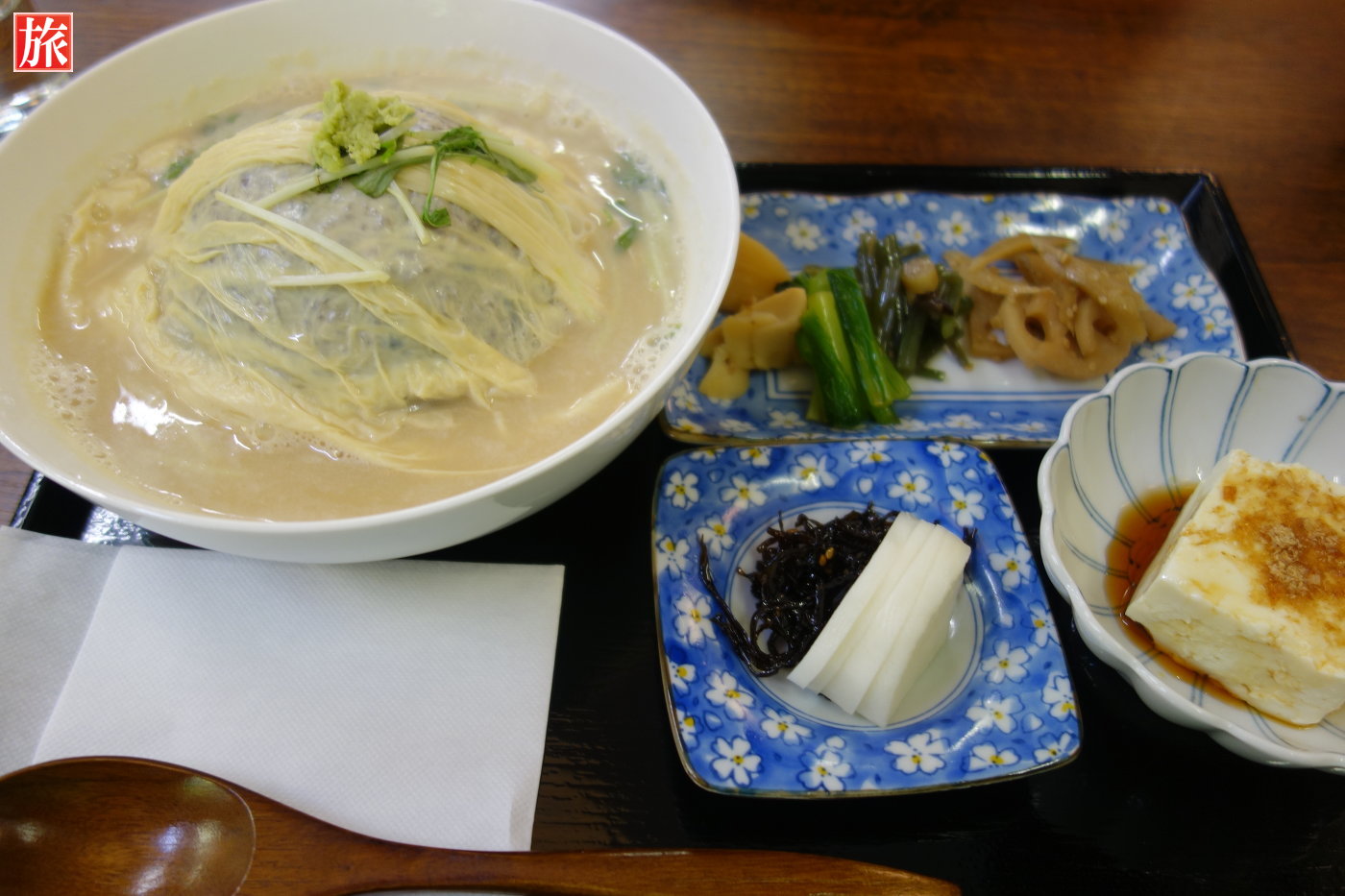 帰り際に「滝」と言う食堂で食べた「湯葉スープ丼」1200円が物凄く美味しかった。