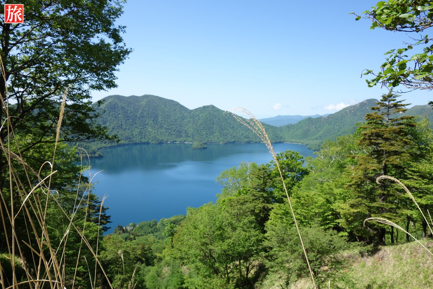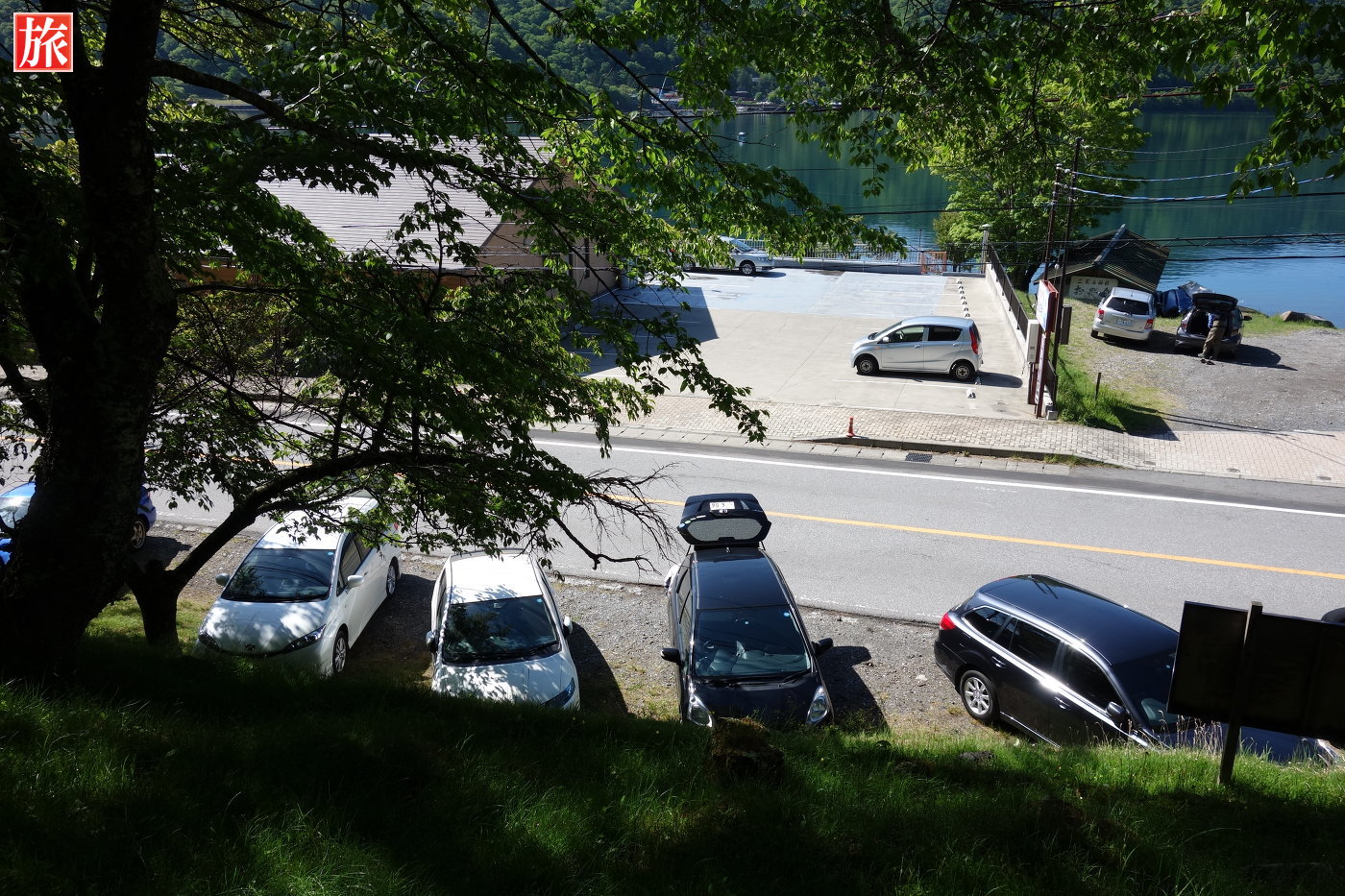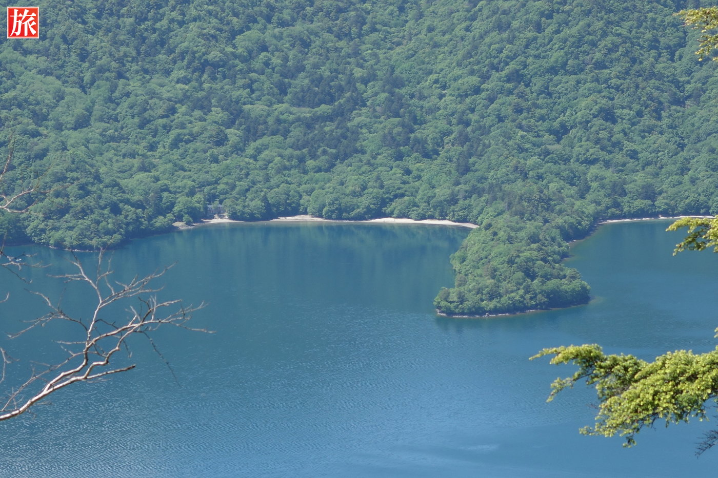 振り返ると中禅寺湖。八丁出島まで綺麗に見える。