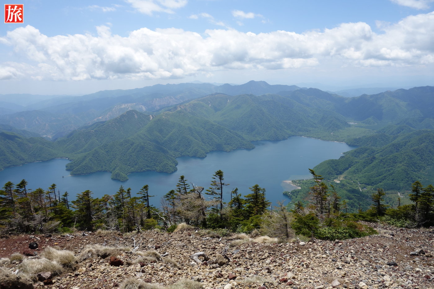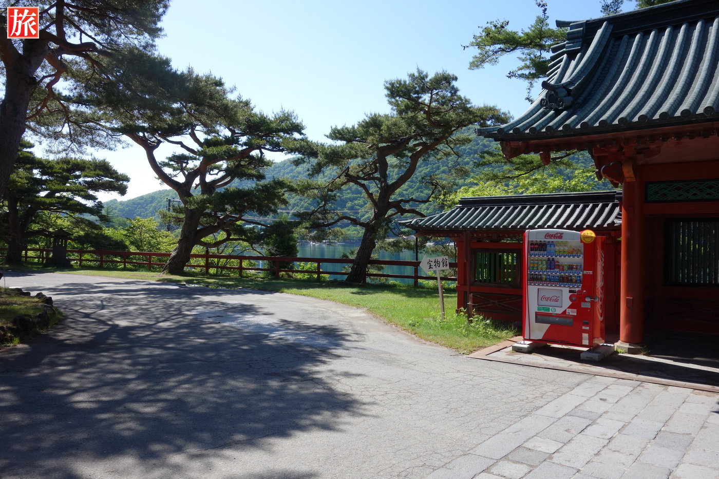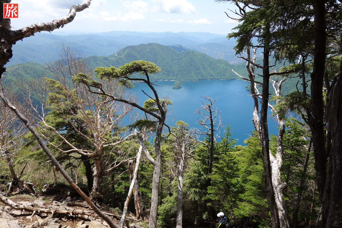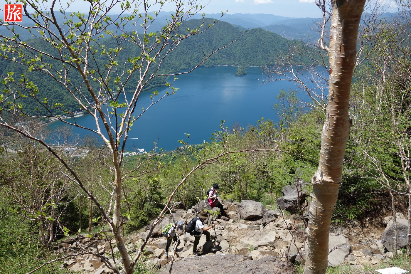 振り返ると中禅寺湖。八丁出島まで綺麗に見える。