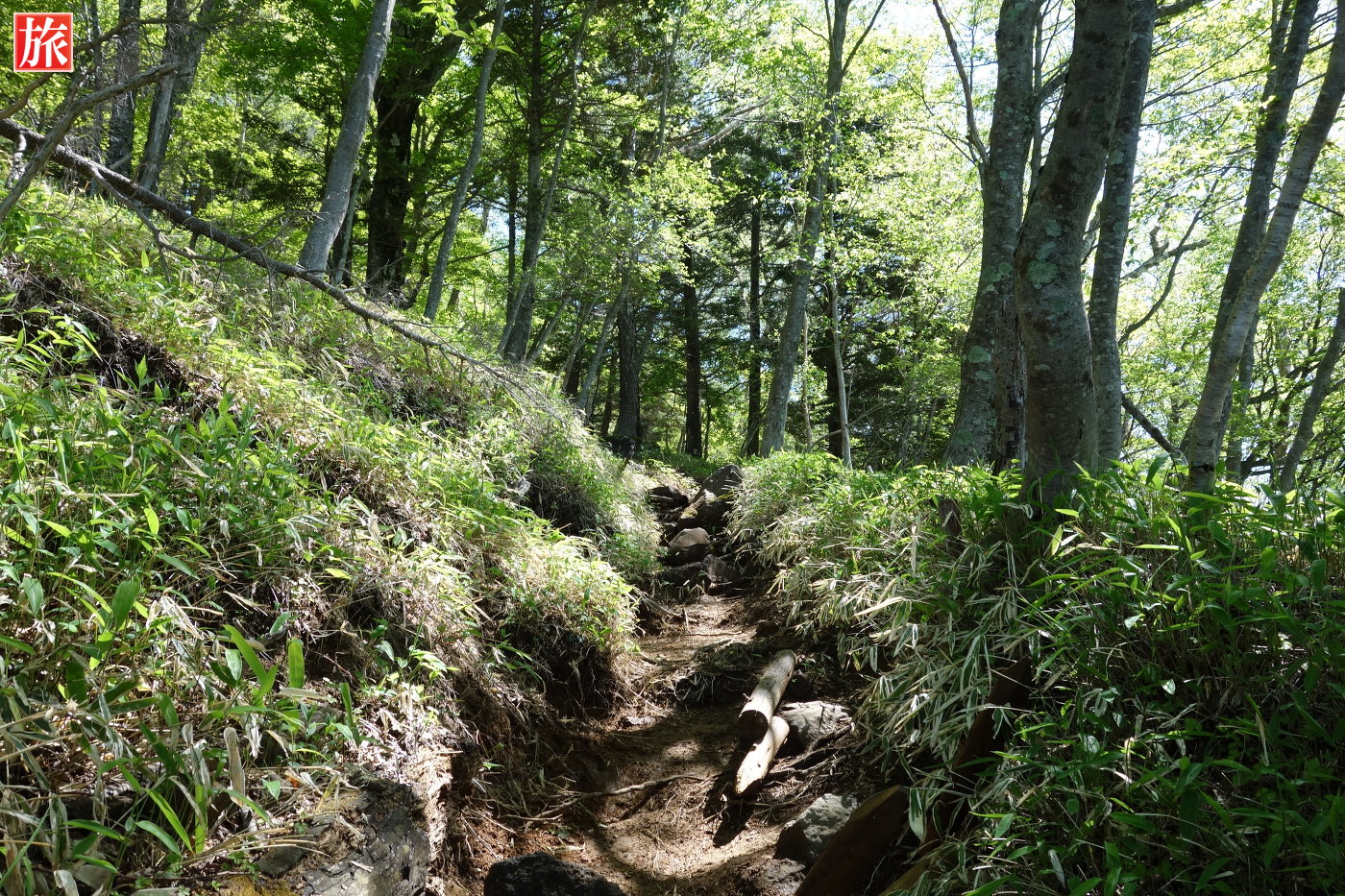 「四合目」からは再び登山道、だがまだまだ歩きやすい。