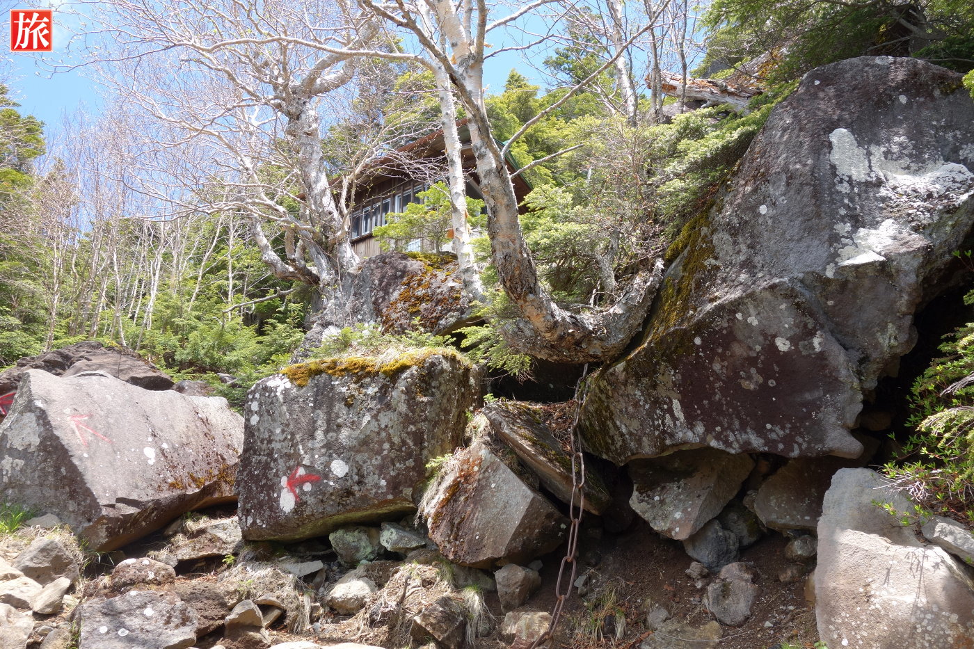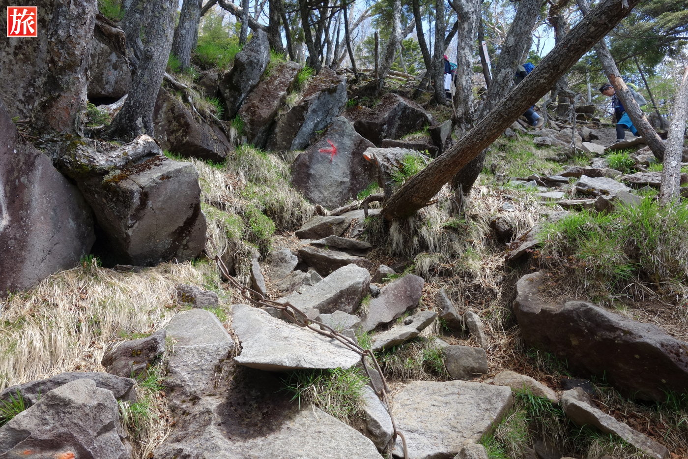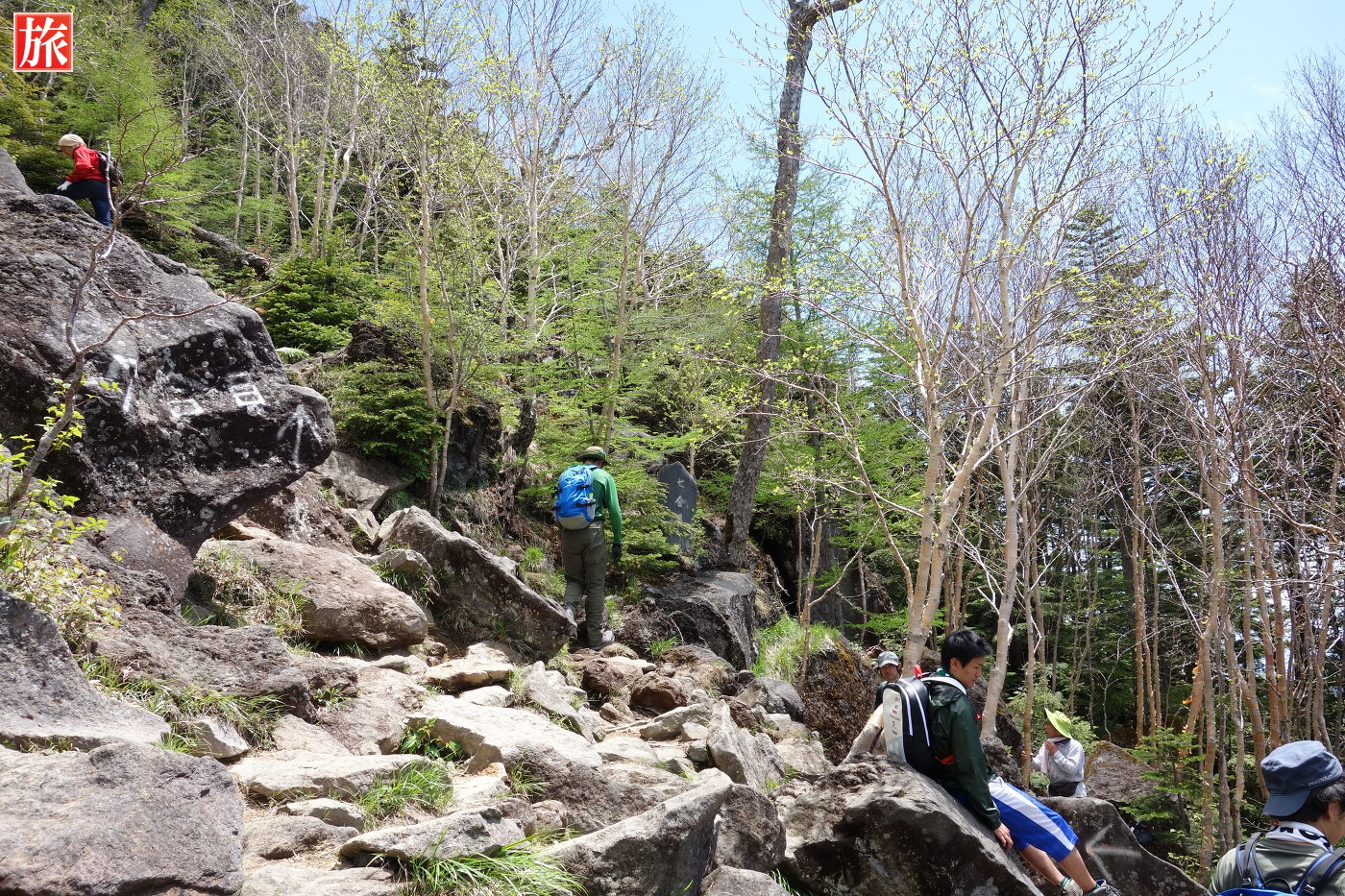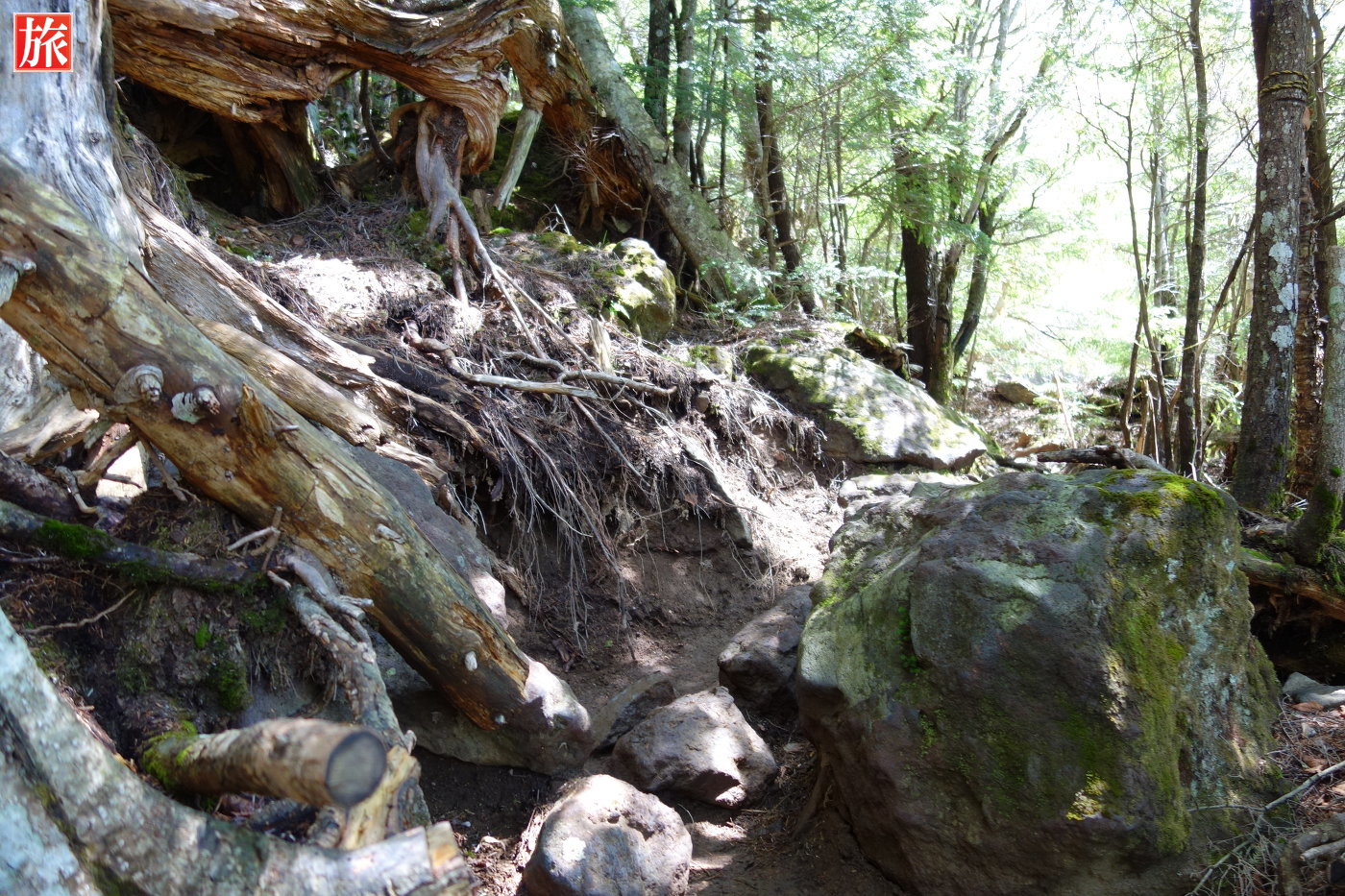 この辺りから山道の様相が一変する。ここまでの歩きやすかったそれとは異なり、岩場となる。