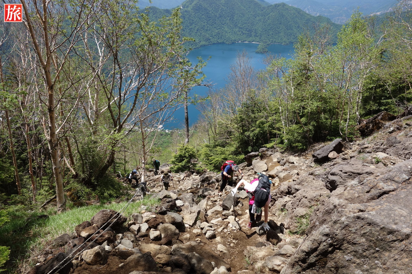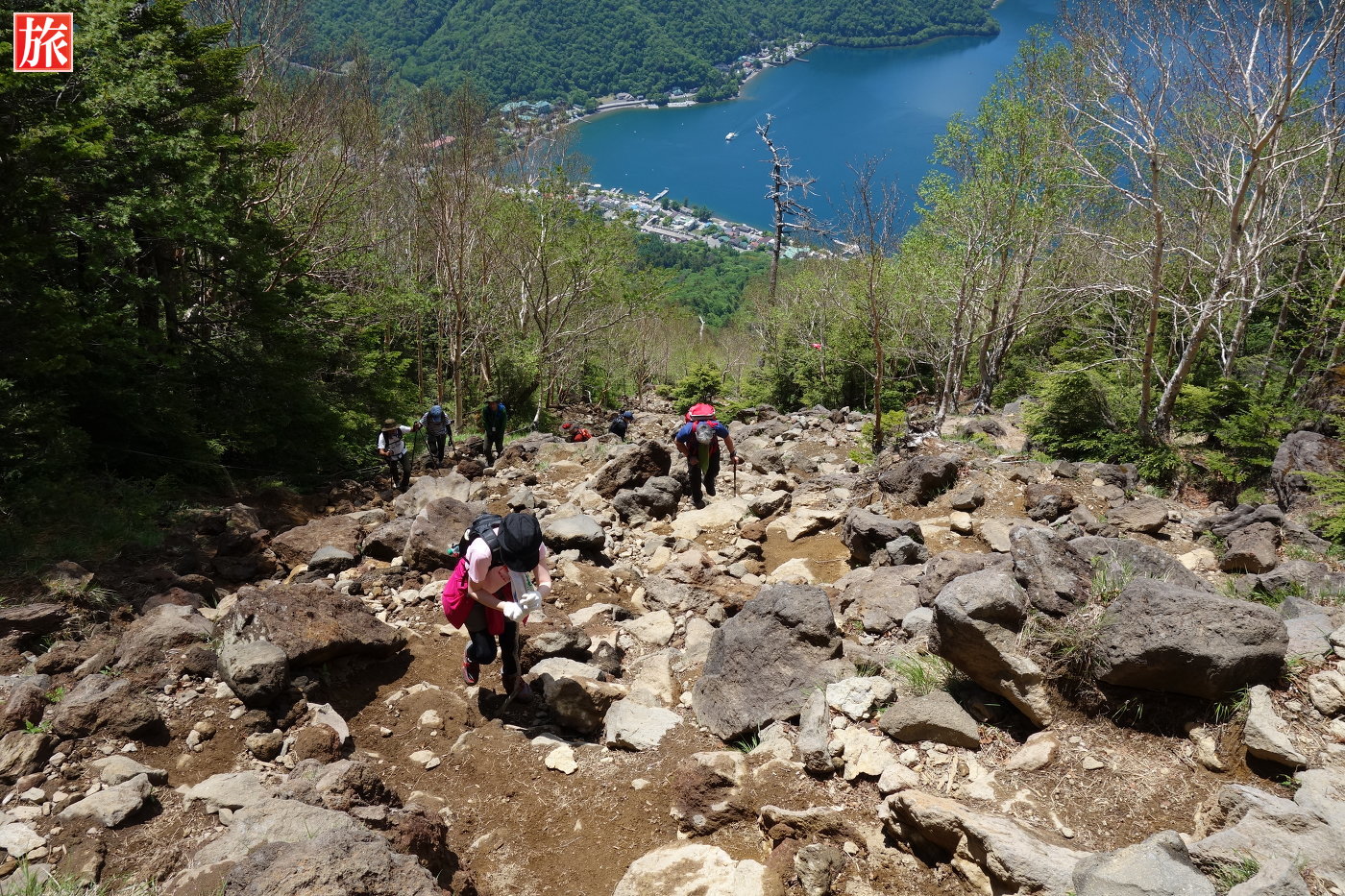 午前8時30分、中禅寺湖(標高1269m)湖畔の二荒山神社中宮祠から山頂(標高2846m)を目指し片道6km程度の山行へ出発。