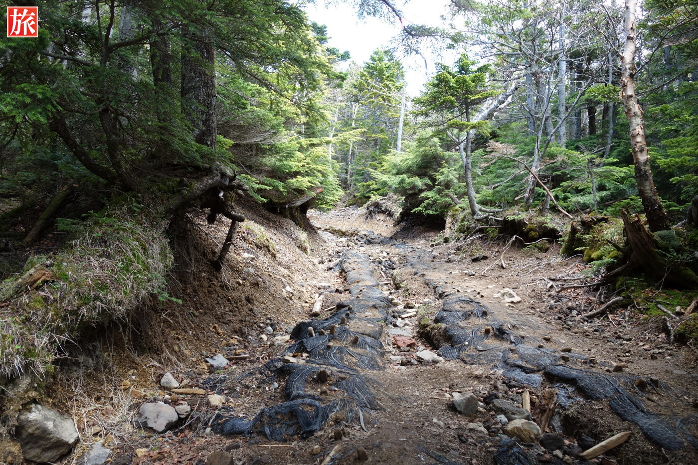 8合目からはガレ場ゾーンは終わり、土嚢ゾーンだ。