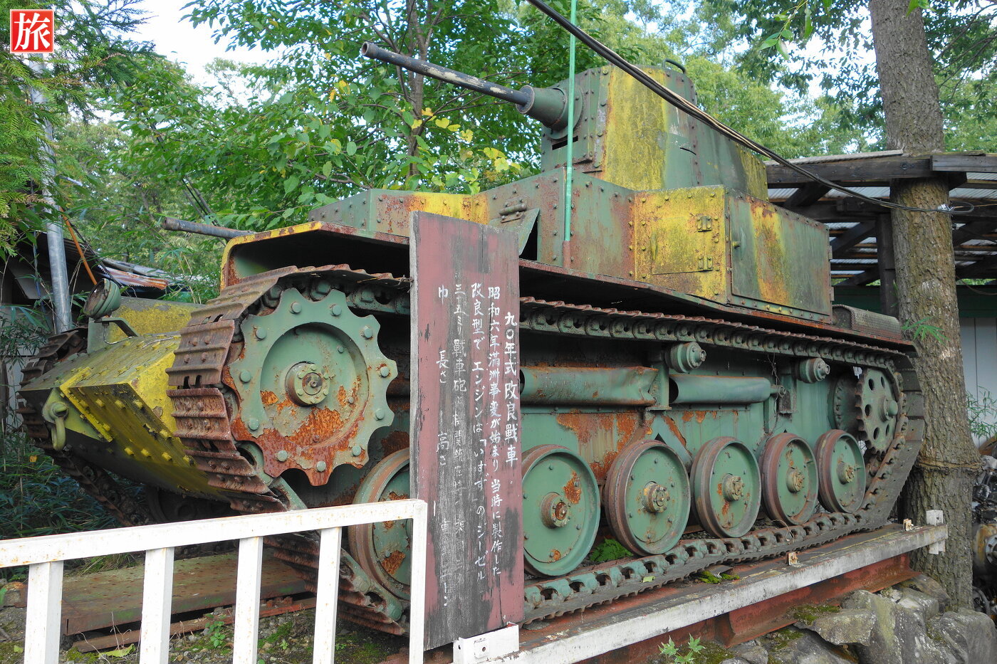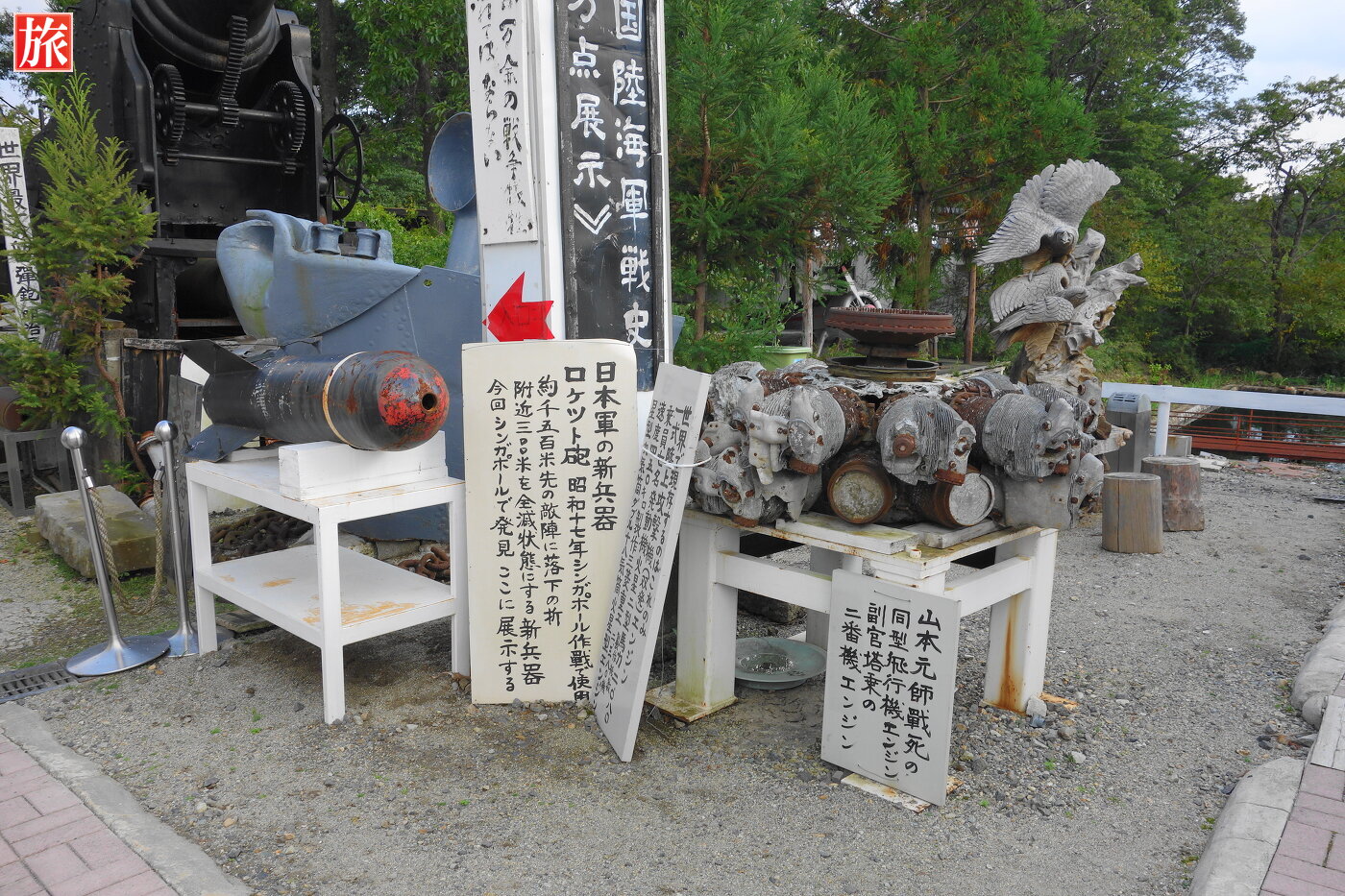 県道17号沿いにあります。那須戦争博物館入口付近の様子。入口の総合案内所の前にゼロ戦エンジン(アメリカ製)とサイパンから引き上げた錆だらけの戦車が目を引く!