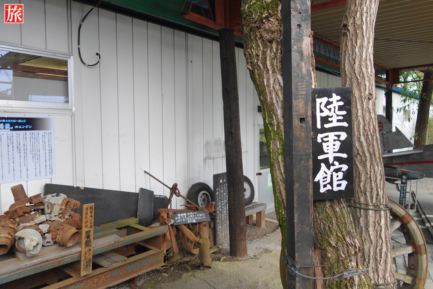 陸軍館入口。高射機関銃。「隼(はやぶさ)」バッテリー。零戦のプロペラなど・・・
