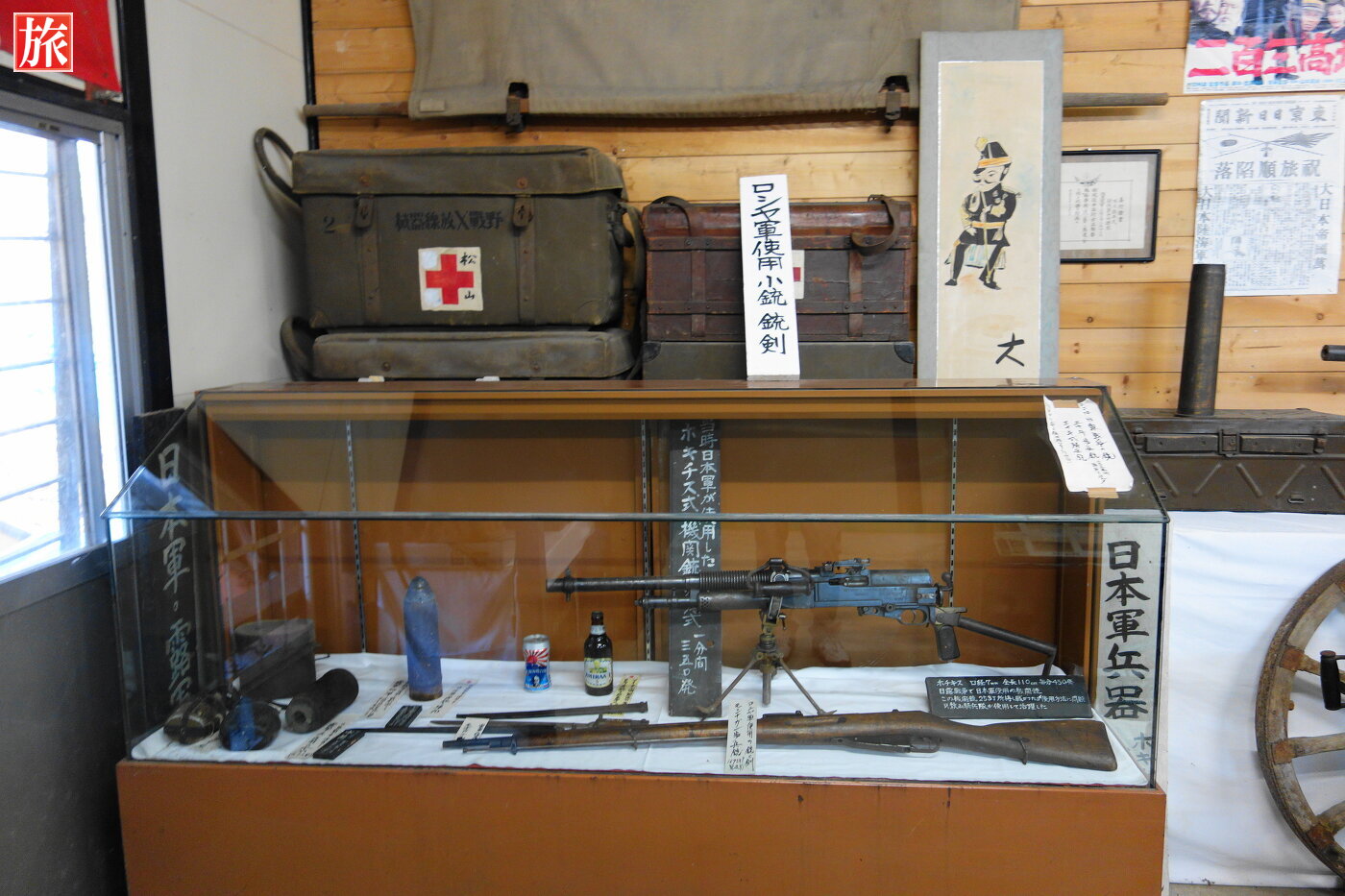 92年式重機関銃。皇室関係の展示物。陸軍・軍刀。物資不足時代の品々。
