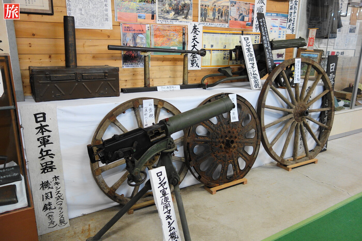 ロシア軍使用マキシム機関銃。日本新聞。陸軍館内の様子。
