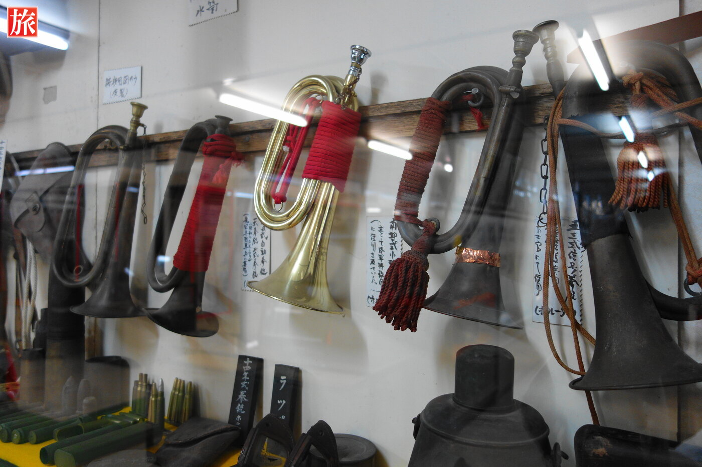 いろいろなラッパ。軍服類。兵書類。帽子。所狭しと並ぶ貴重な品々・・・