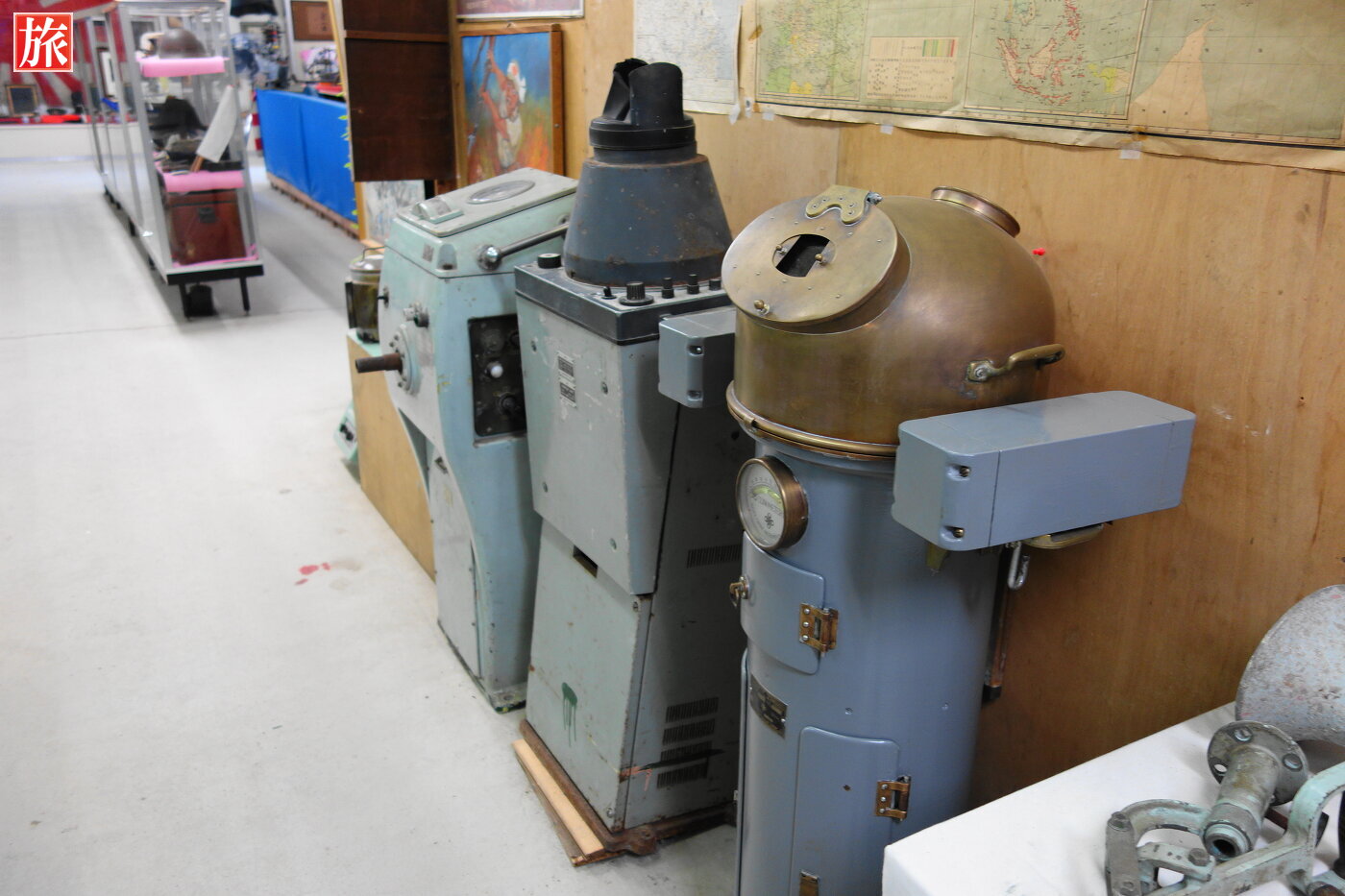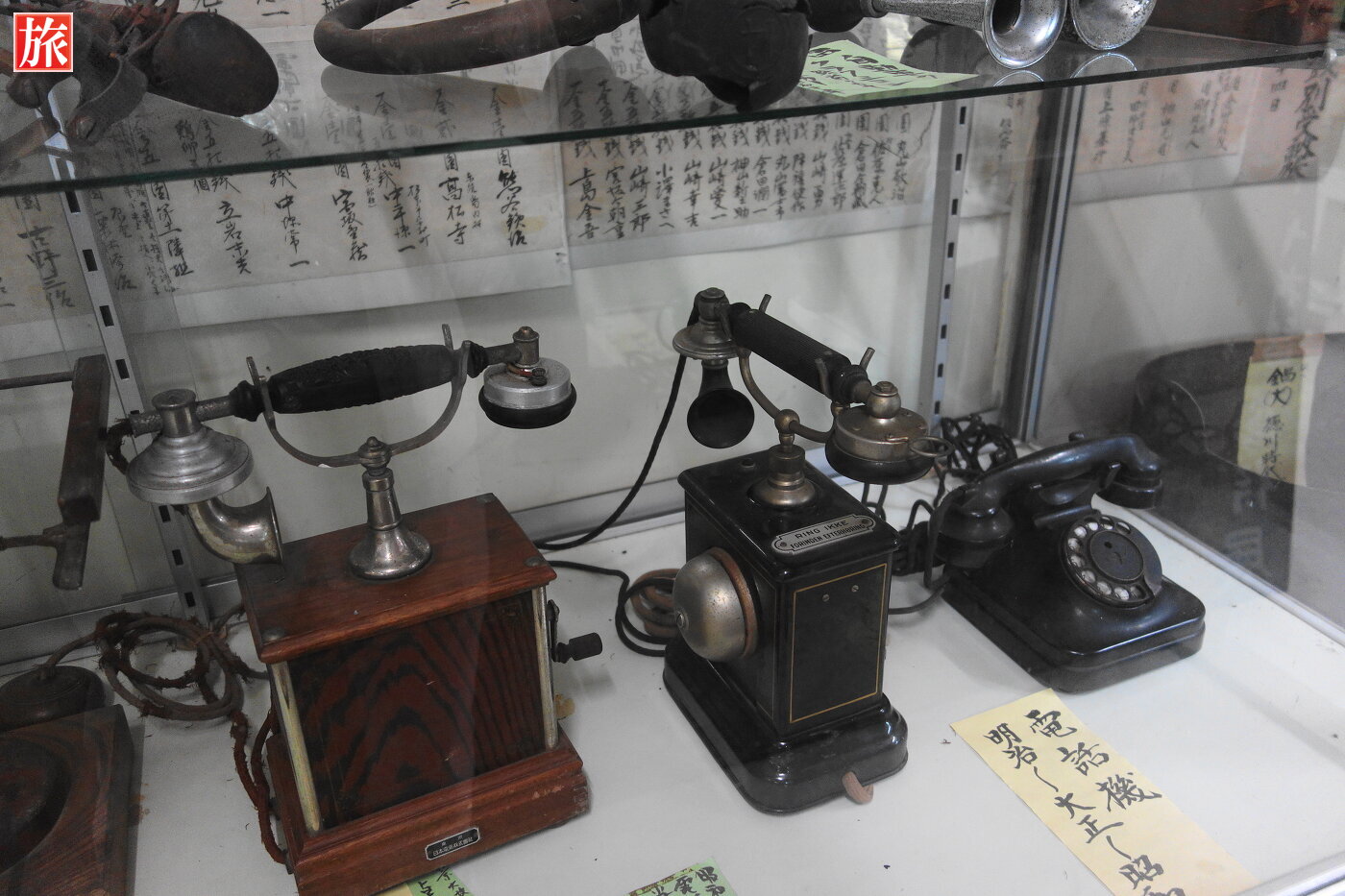 大正時代から昭和初期に利用された自動販売機。明治・大正・昭和の各時代に使われていた電話機。海軍館内の様子。