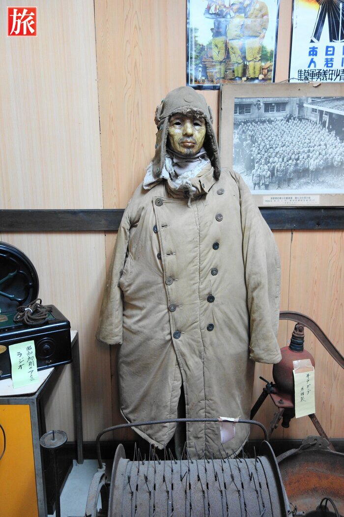 横井庄一さんのマネキン。住居図。満州開拓・シベリア抑留関係の展示部屋。リアルでちょっと怖いマネキン・・・