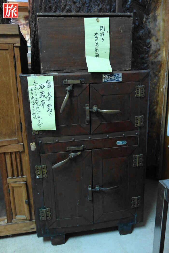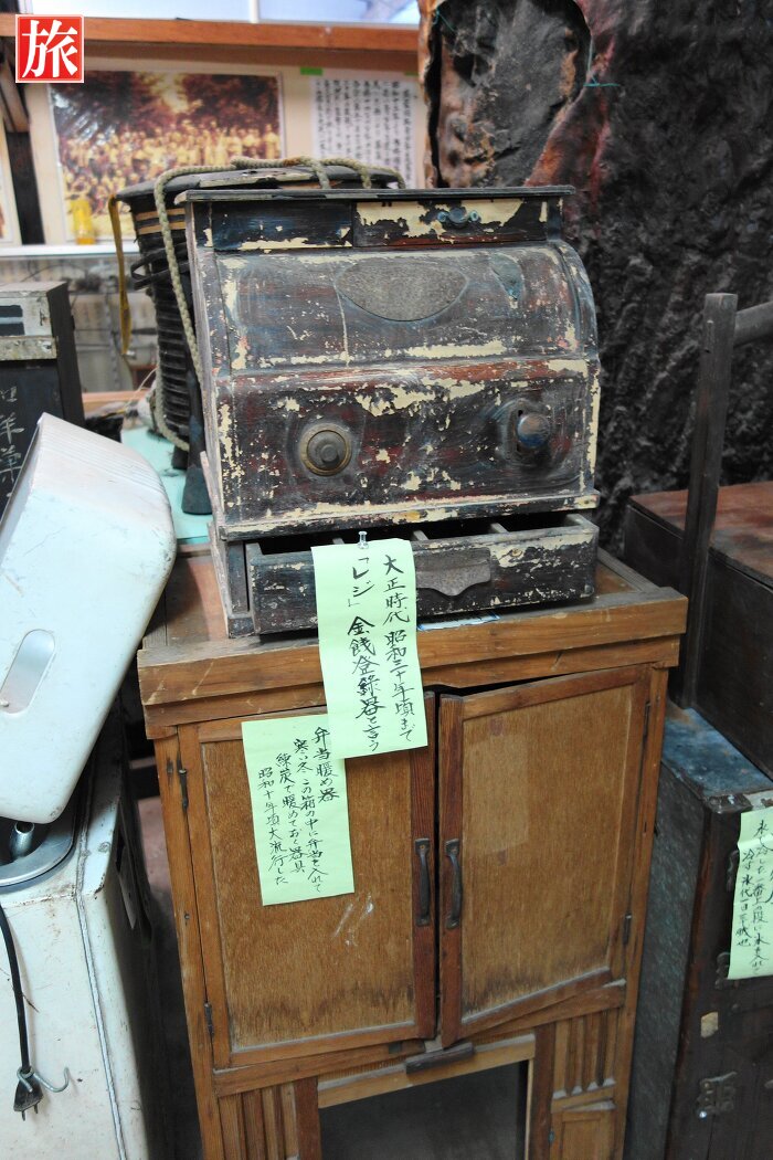 昭和初期のアメリカ製ラジオ。大正時代から昭和30年頃まで使われていたレジ。明治・大正・昭和初期に使われていた冷蔵庫。珍品・防火電燈。