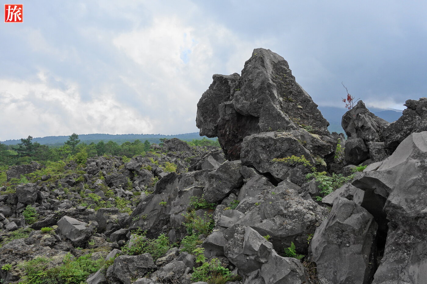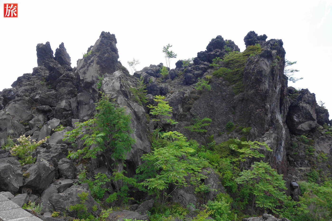 浅間山北麓に最大幅2km、長さ5.5kmにわたって広がる巨大な溶岩の奇勝。浅間山の噴火警戒レベルは2で火口周辺規制されていましたが、鬼押出し園は火口から4kmなので営業中でした。間近に見る巨大な溶岩は迫力満点でした。