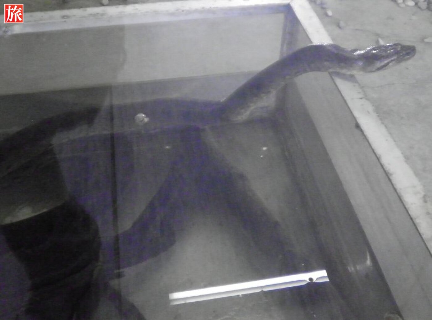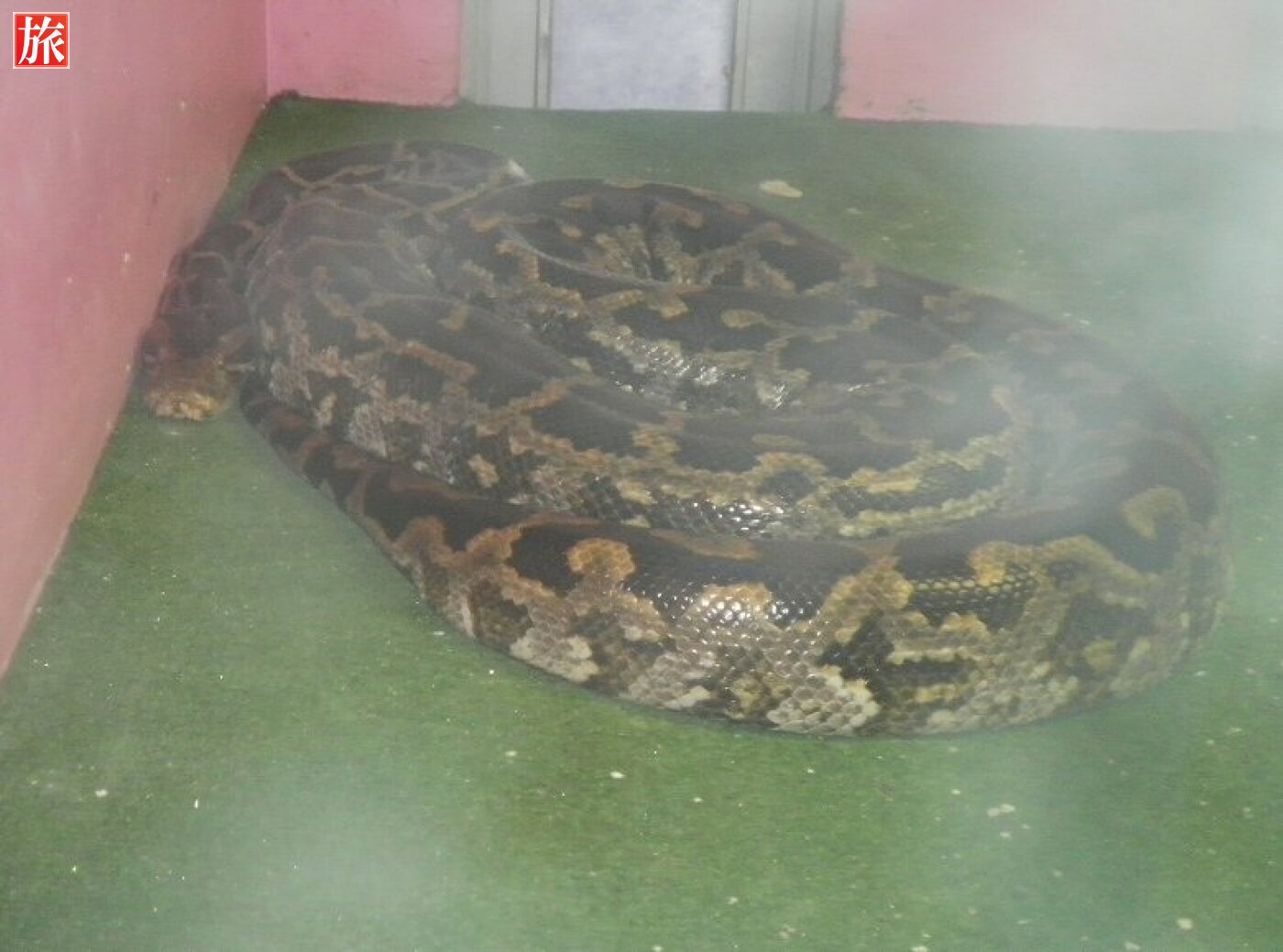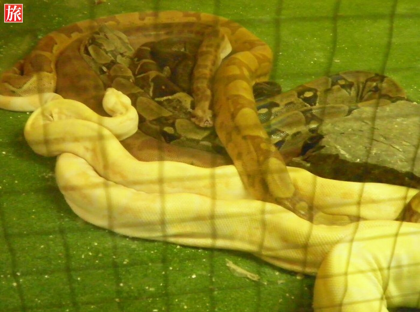 園内中央に位置する熱帯蛇類温室に入ります。いきなり目に入って来るのは、オオアナコンダです。大きなキイロアナコンダも居ます。